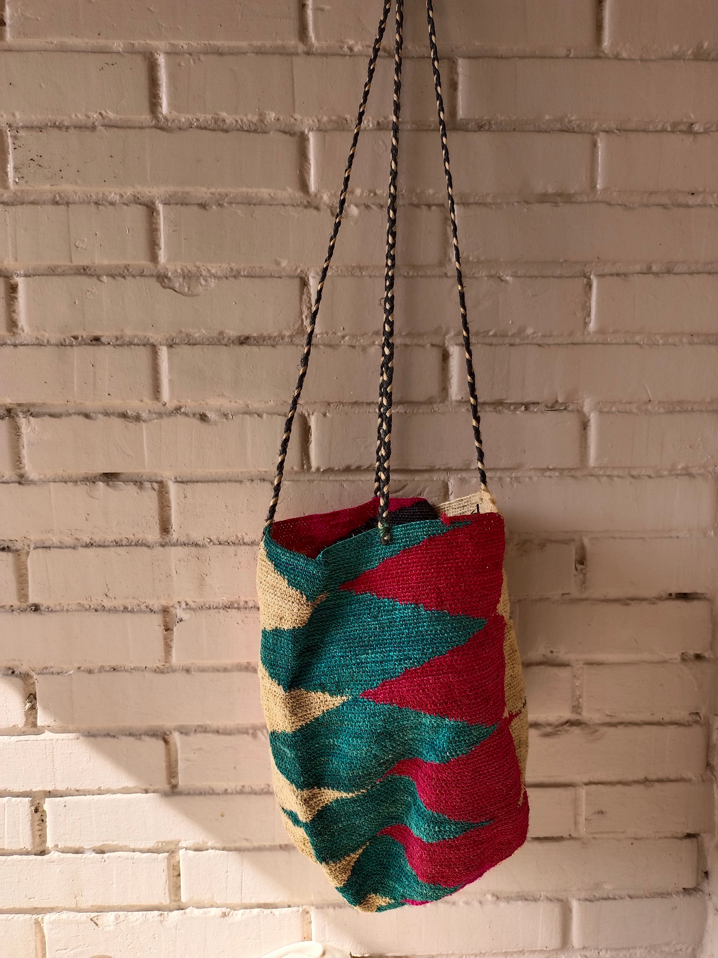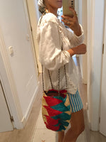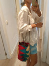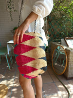 Bolso rafia de colores con asa larga ajustable.