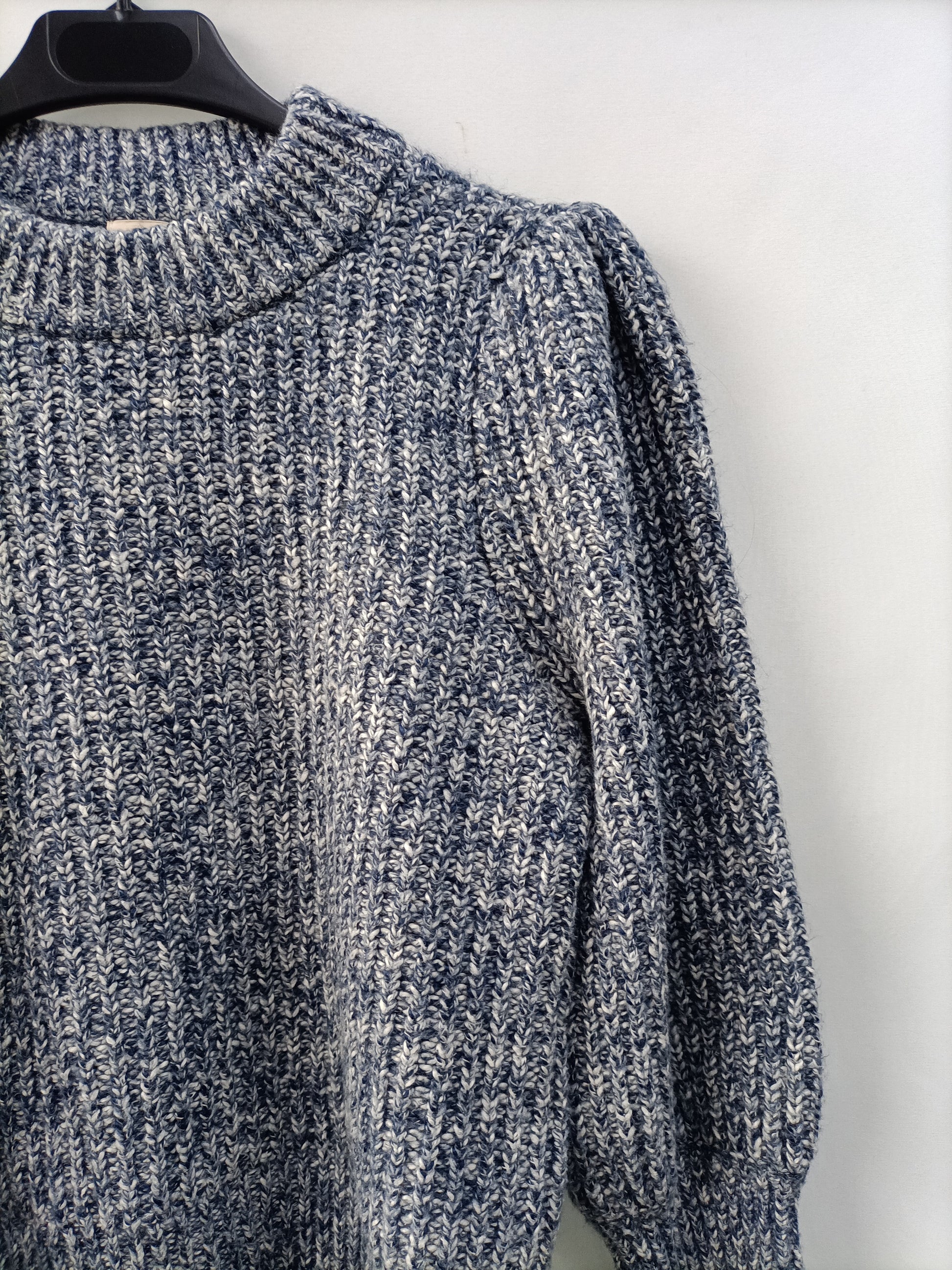 Jersey jaspeado azul y blanco con las mangas ligeramente Abullonadas. Largo 55cm