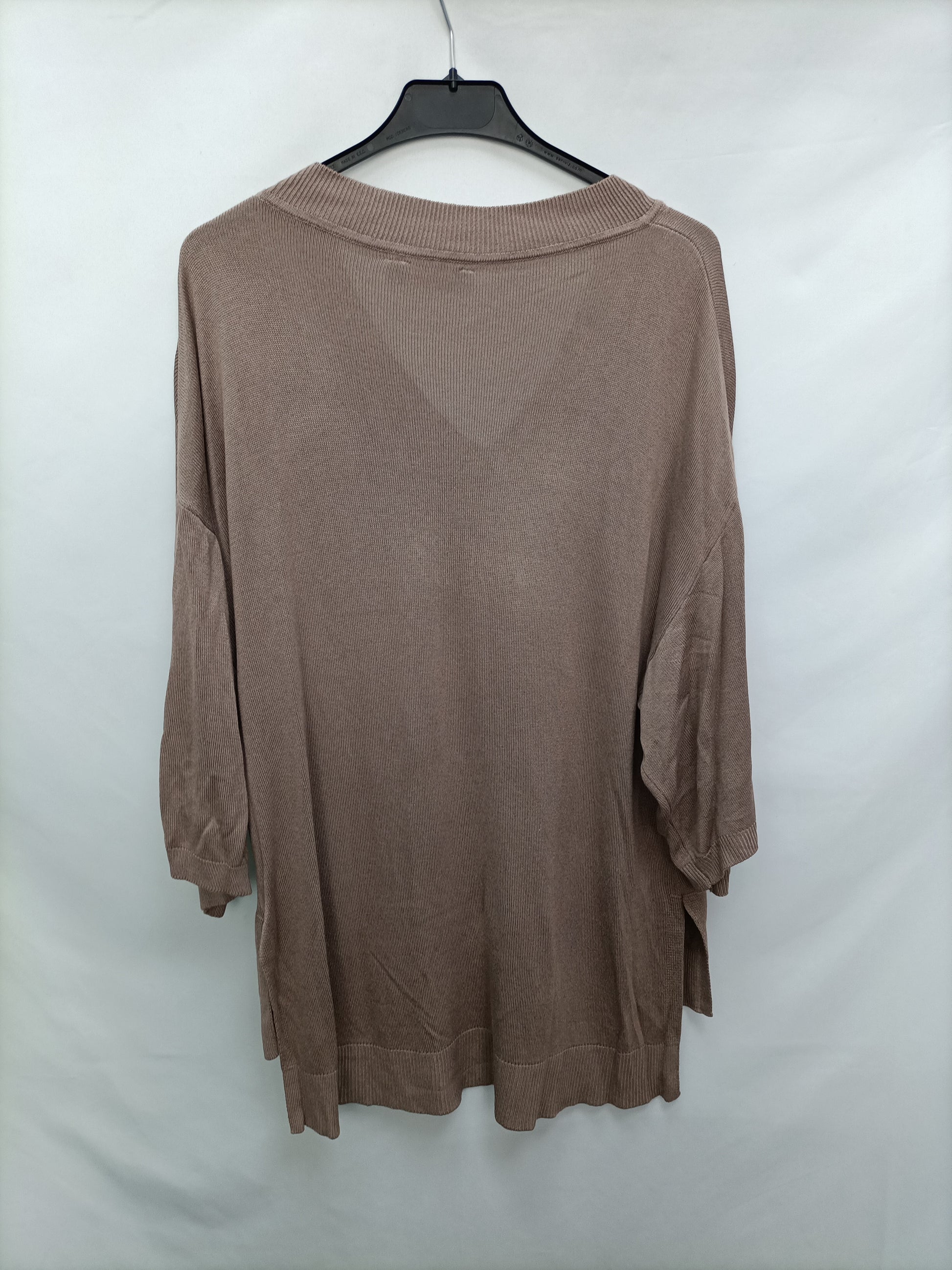 Jersey marrón fluido cuello pico. Fluido y elastico. Oversized. largo 76 cm