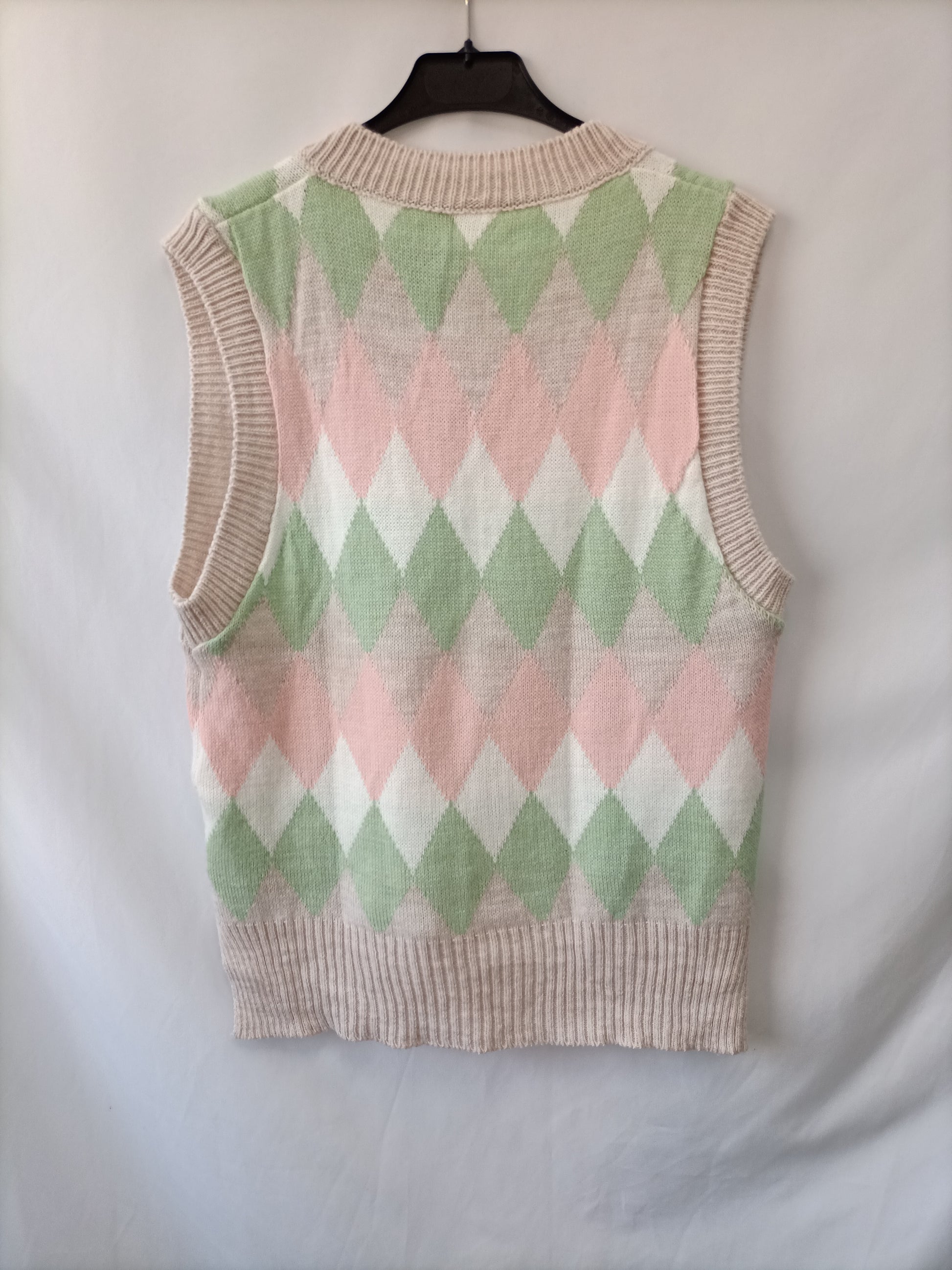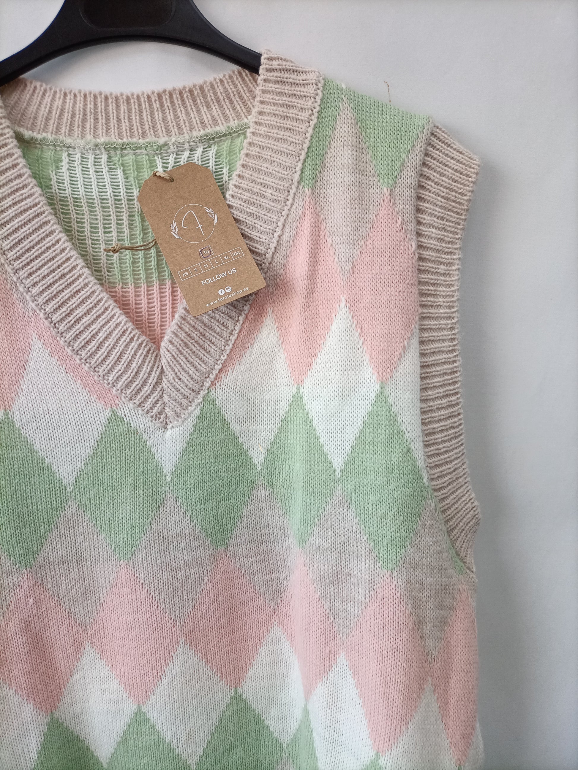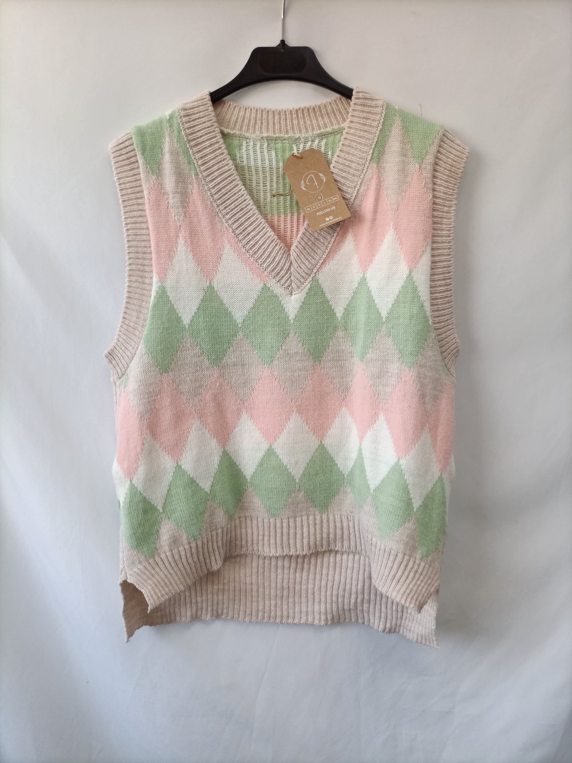 NUEVO CON ETIQUETA.Jersey sin manga rombos tonos pastel.Largo 65 cm