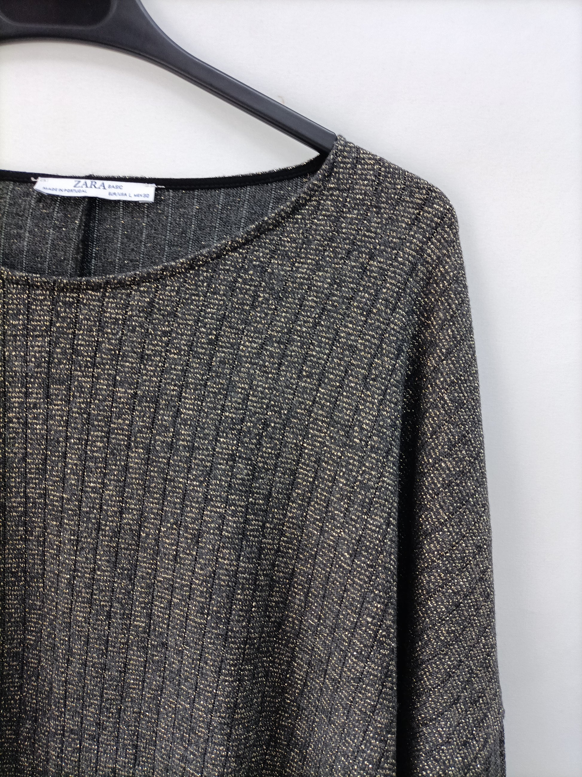 ZARA. Jersey gris hilos T.l