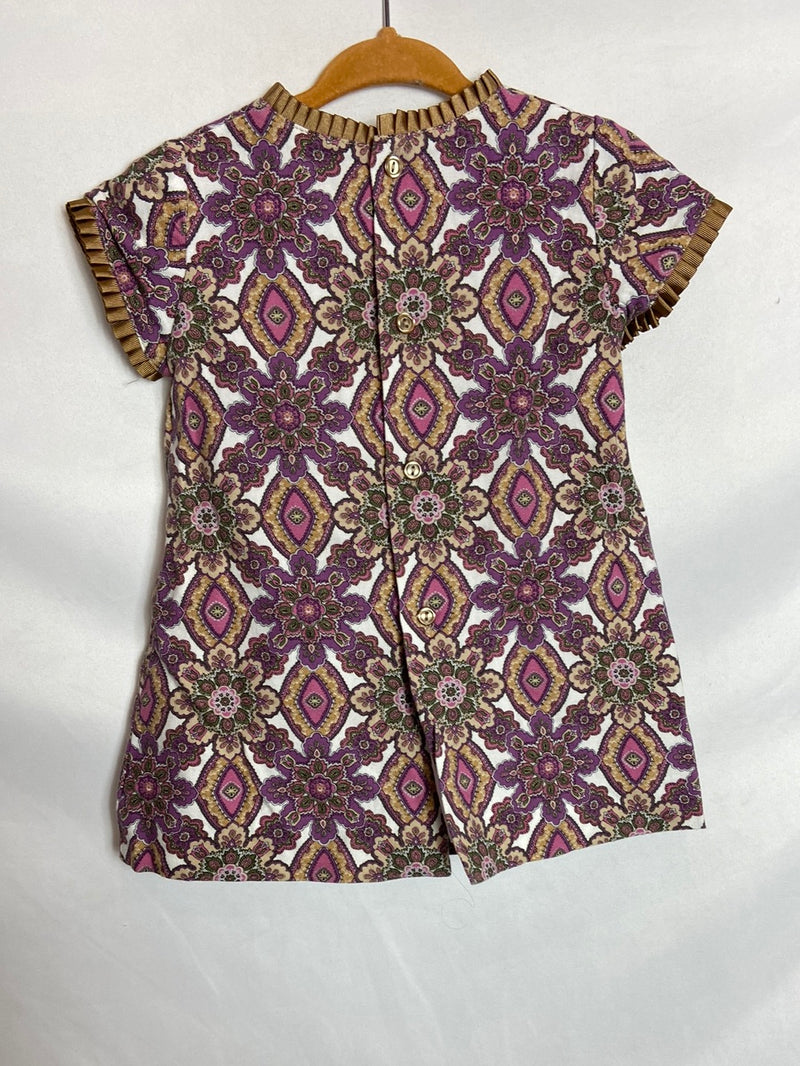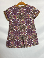 TARTALETA. Vestido estampado morados lazo marrón. T 12 meses