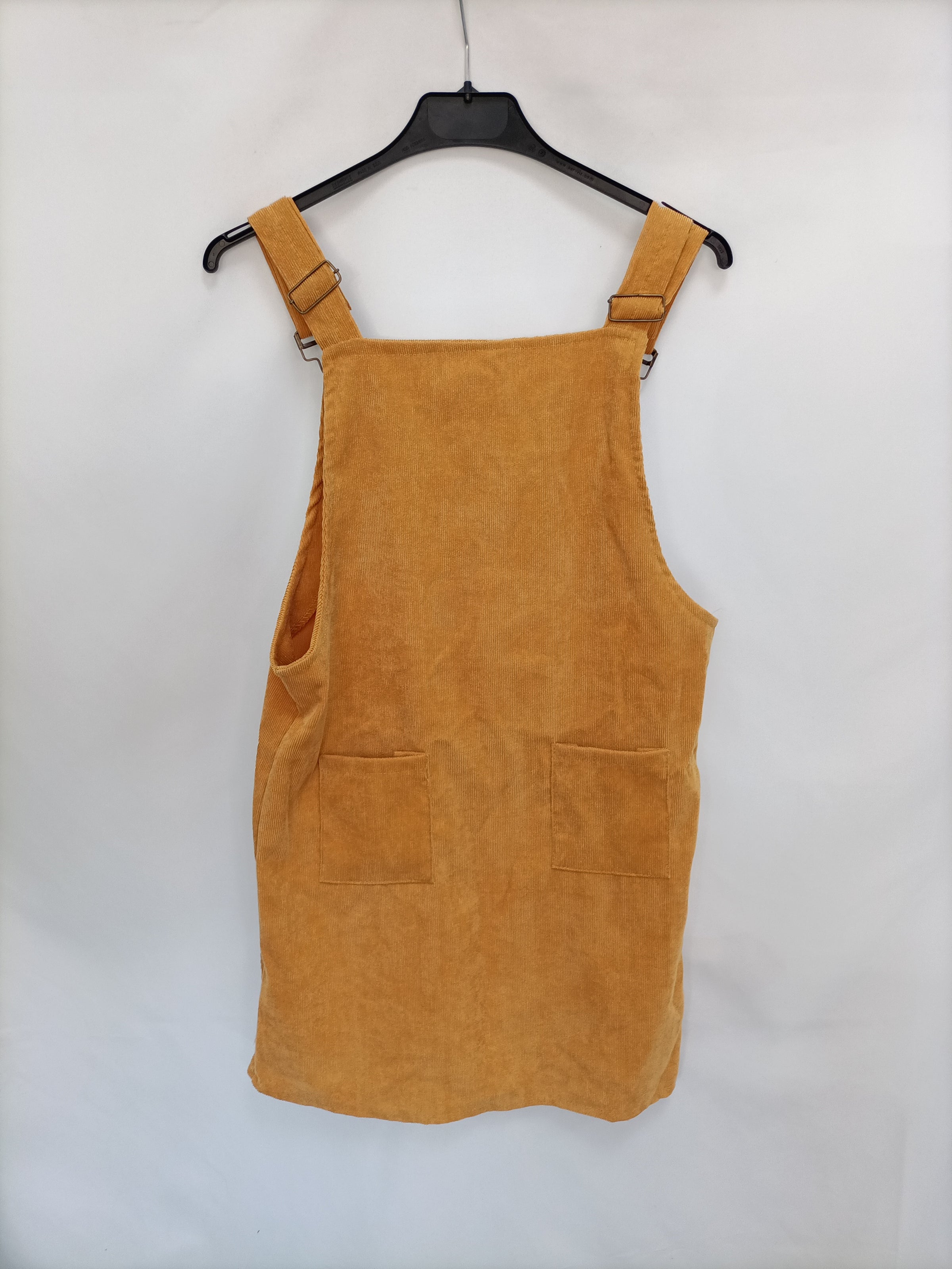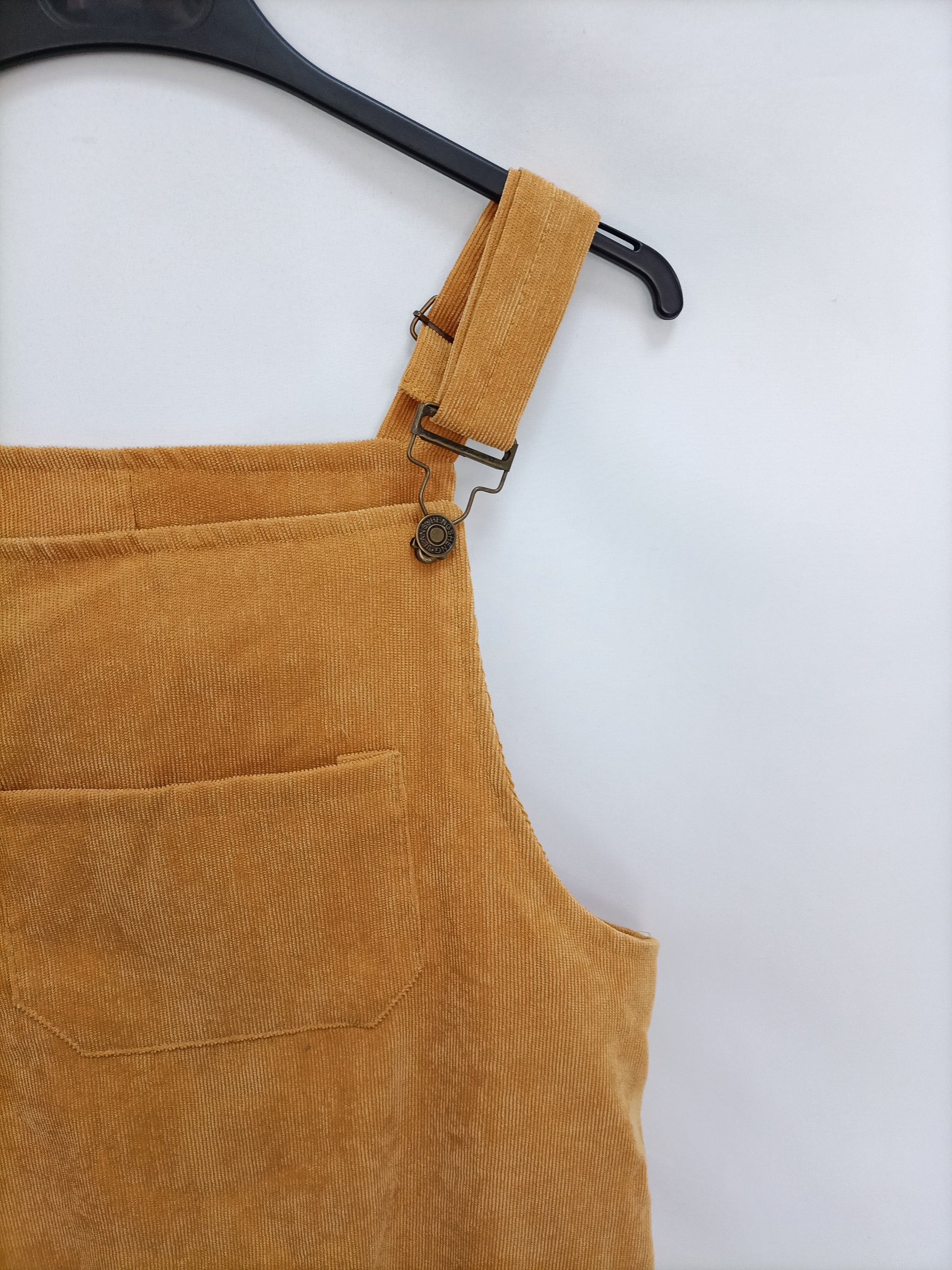 Peto corto de pana color mostaza. Fluido y no elástico. De sisa a sisa 45 cm largo 70 cm