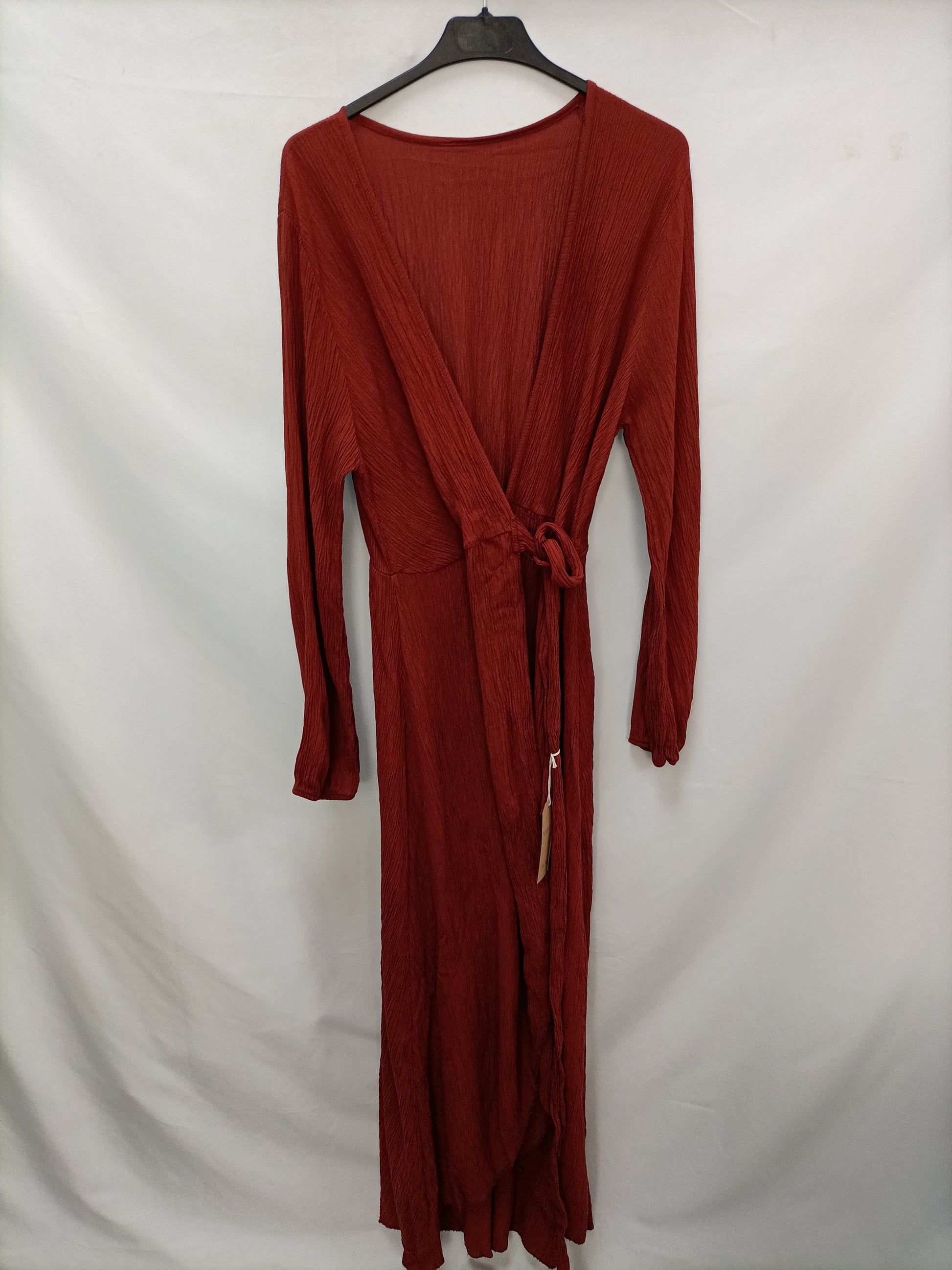 NUEVO CON ETIQUETA. Vestido largo cruzado teja de tejido efecto "arrugado". Semielastico. De sisa a sisa 49cm largo 147 cm
