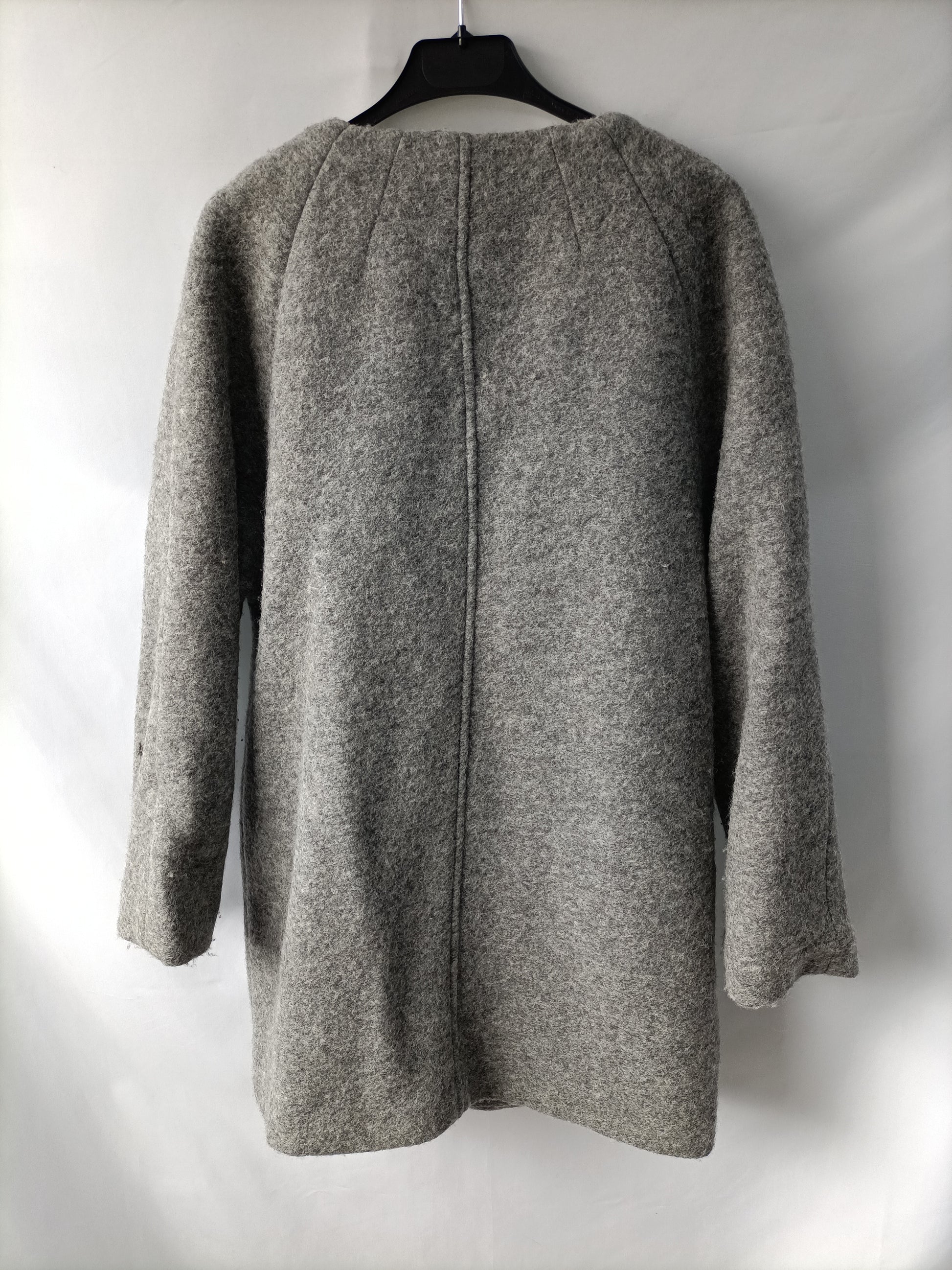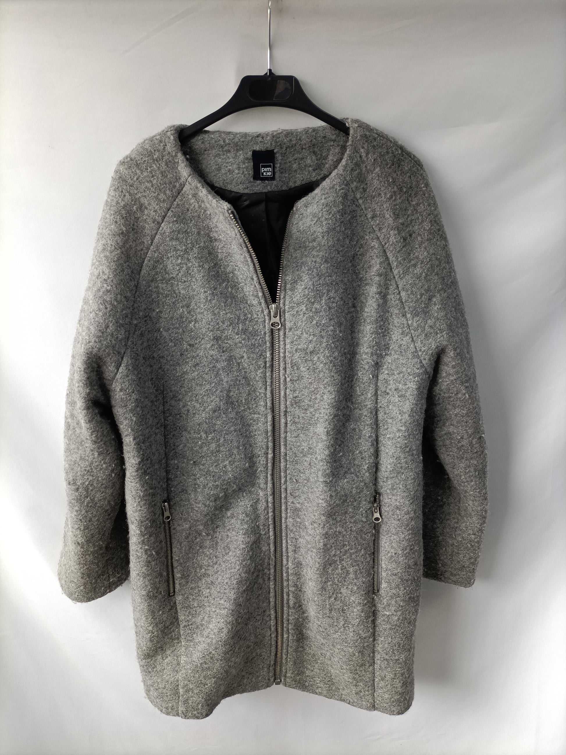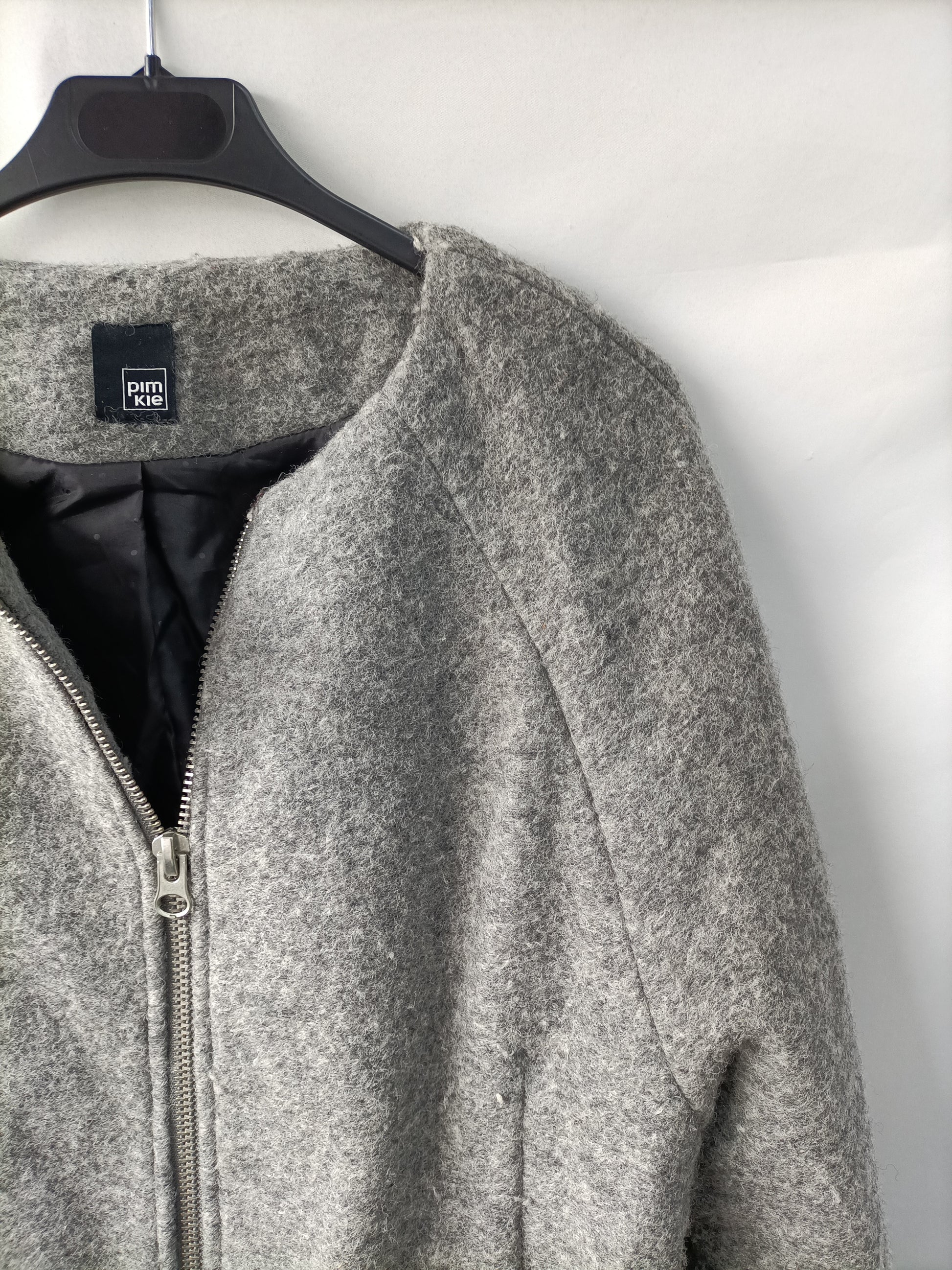 Abrigo gris dempaño rizado con cremallera. No elástica. De sisa a sisa 54 cm largo 81 cm