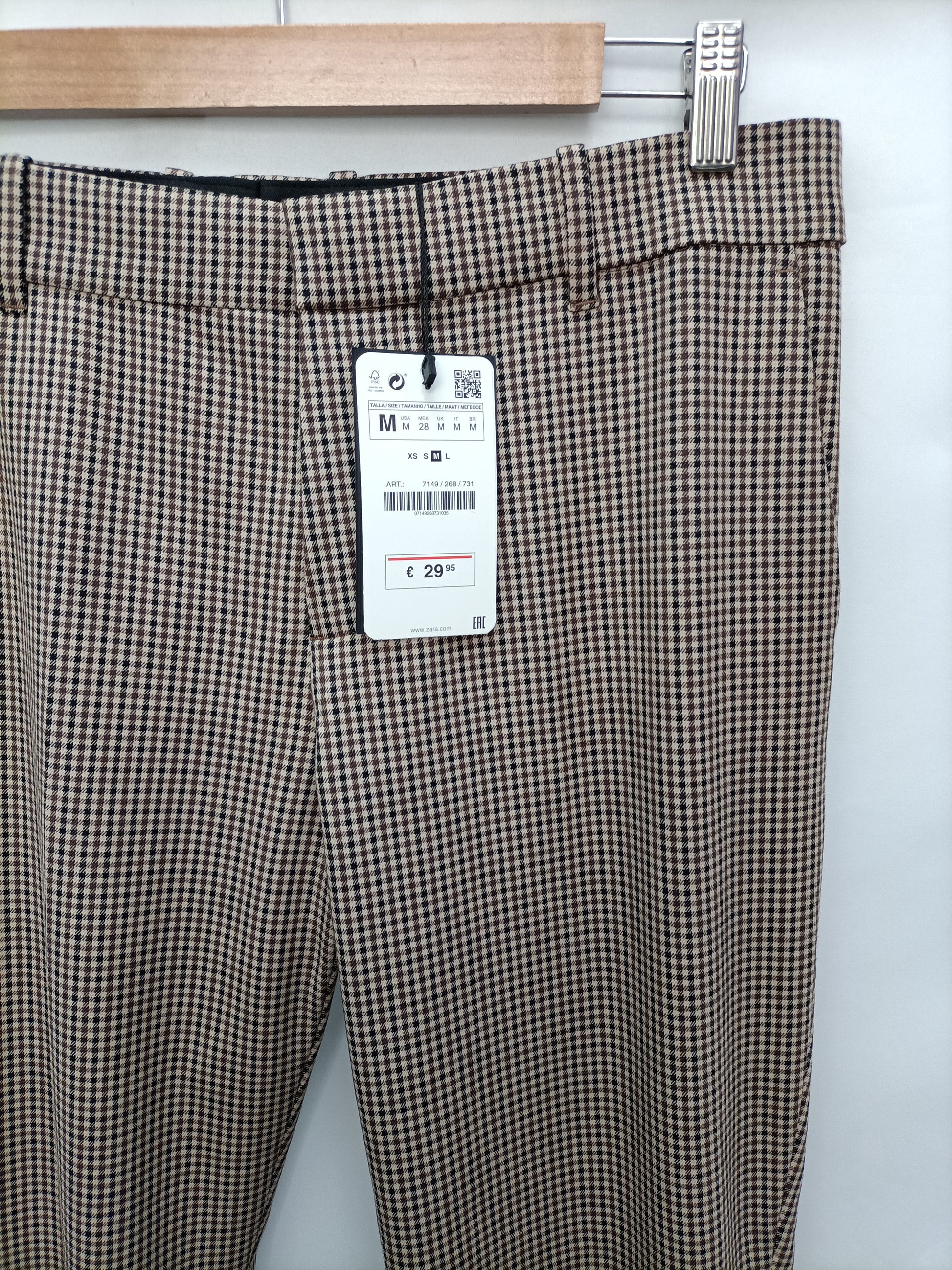 ZARA. Pantalón beige cuadros T.m