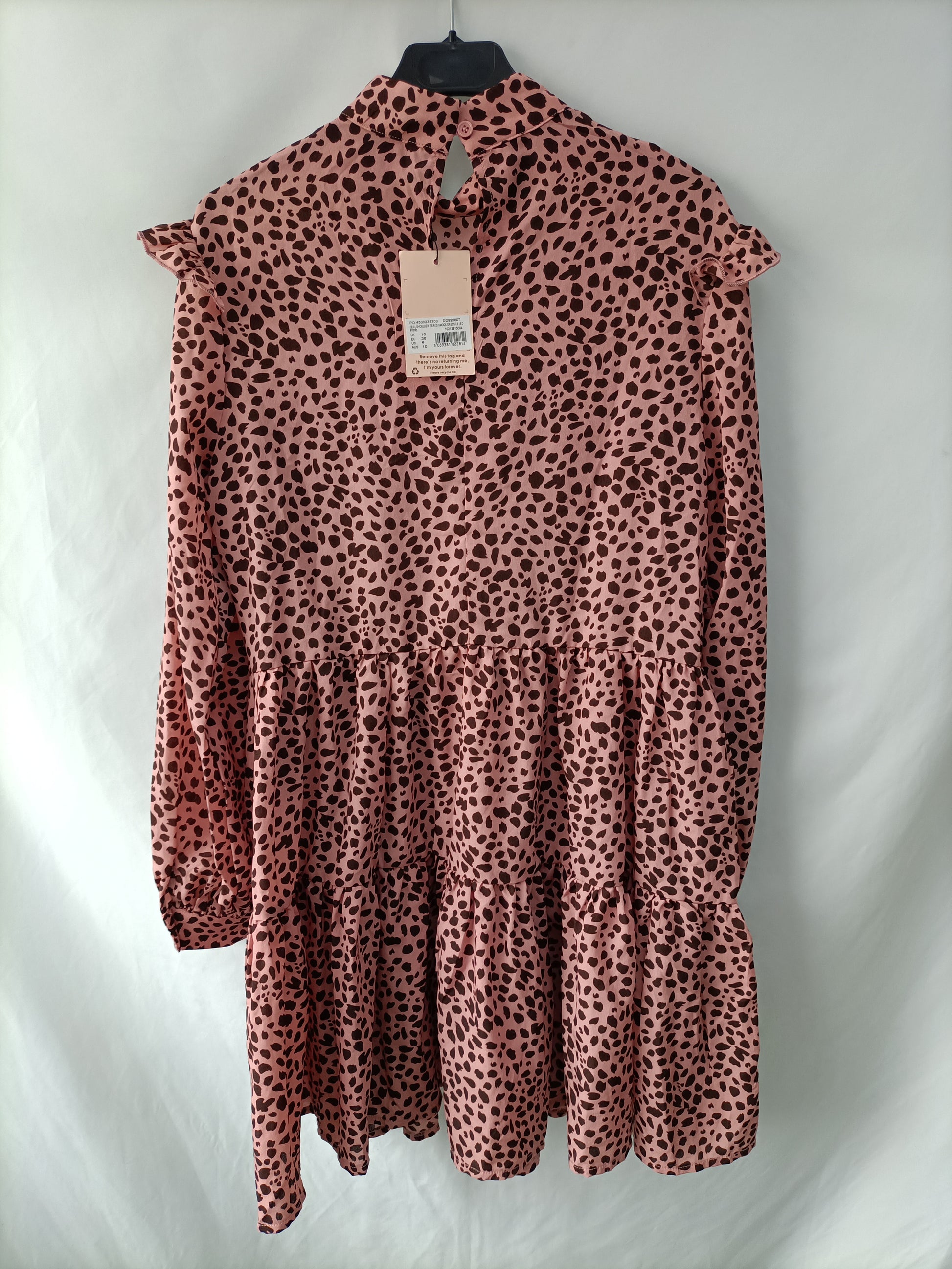 NUEVO CON ETIQUETA. Vestido corto rosa con estampado animal print en marrón. Fluido. No elastico. De sisa a sisa 45 cm largo 87 cm