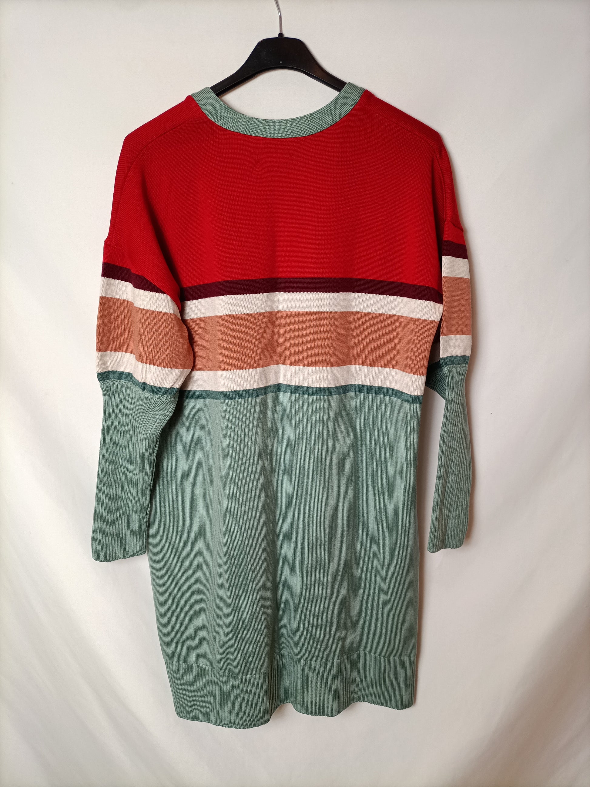 NUEVO CON ETIQUETA. cárdigan de rayas en tono azul . 100%lana