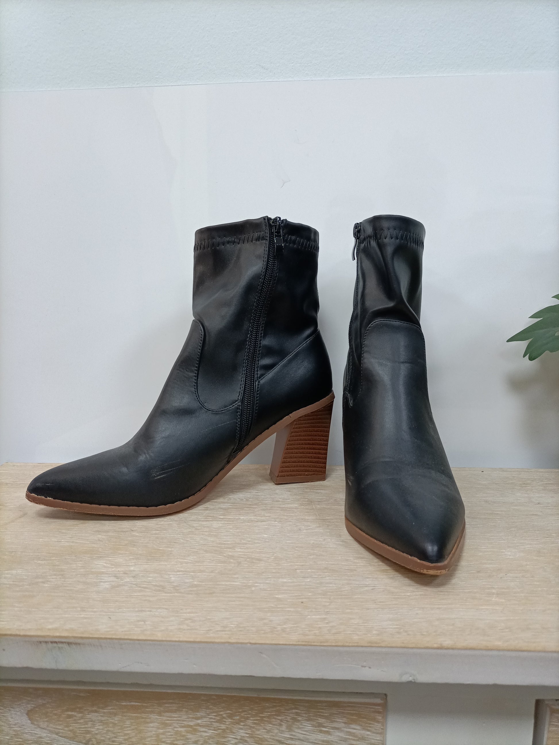 Botines negros de polipiel con cremallera. tacón 7'5 cm Tara: algún rayón