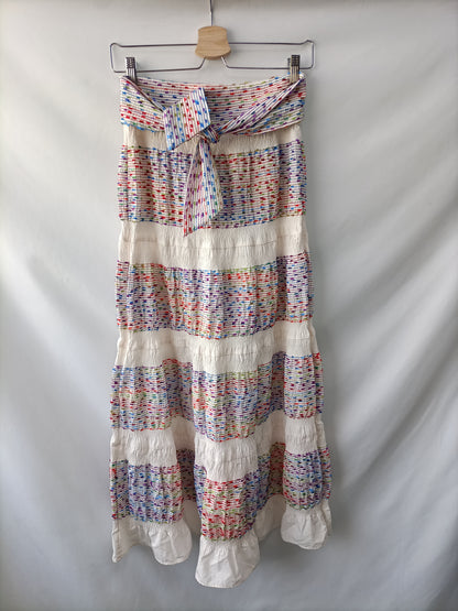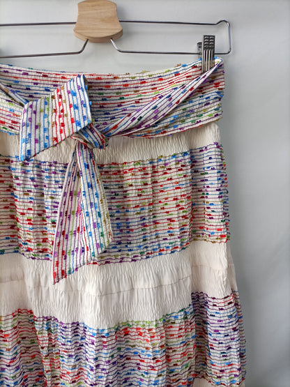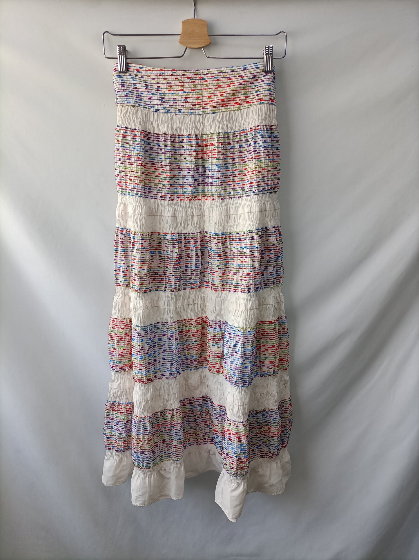 Falda larga bordada con hilos de colores. cintura 35 cm Largo 98 cm