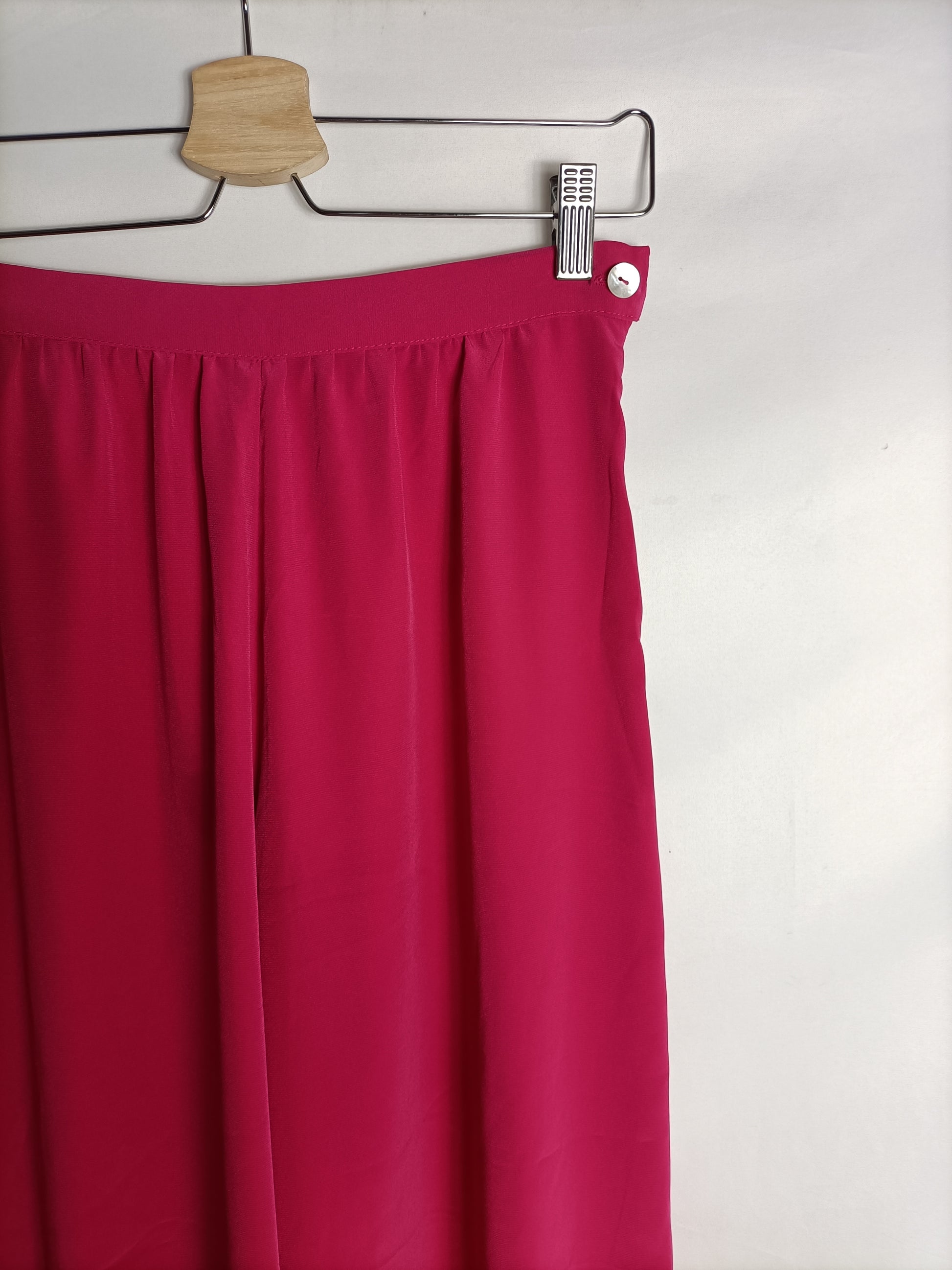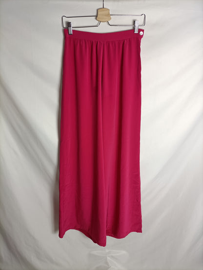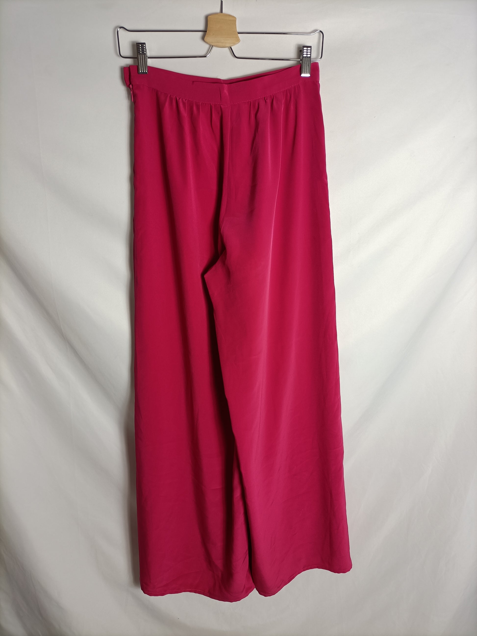 Pantalón palazzo fucsia. Tejido no elástico. Cintura 35cm, largo 112cm