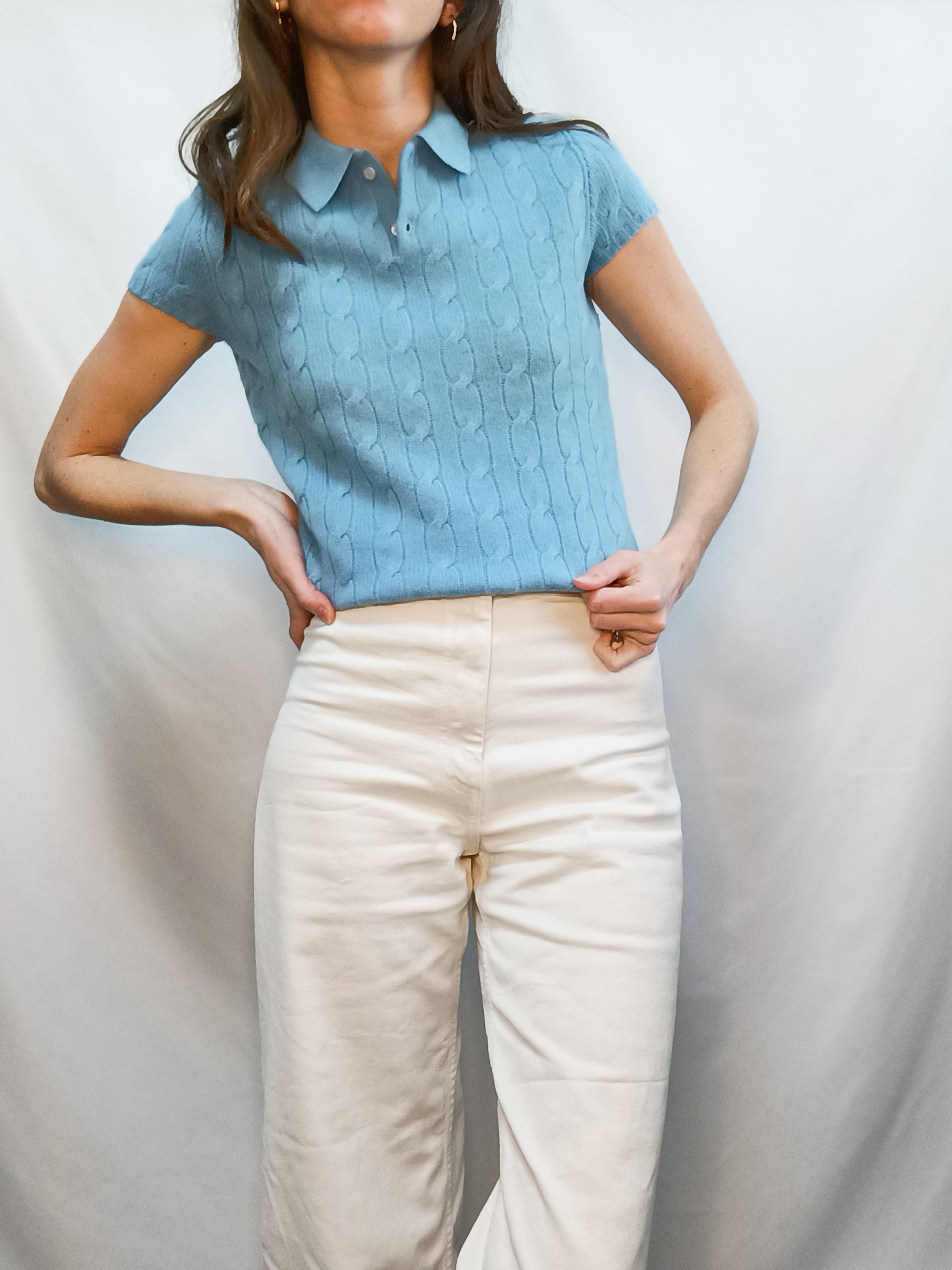 Top azul de cachemere estilo polo. largo 56 cm. largo 56 cm
