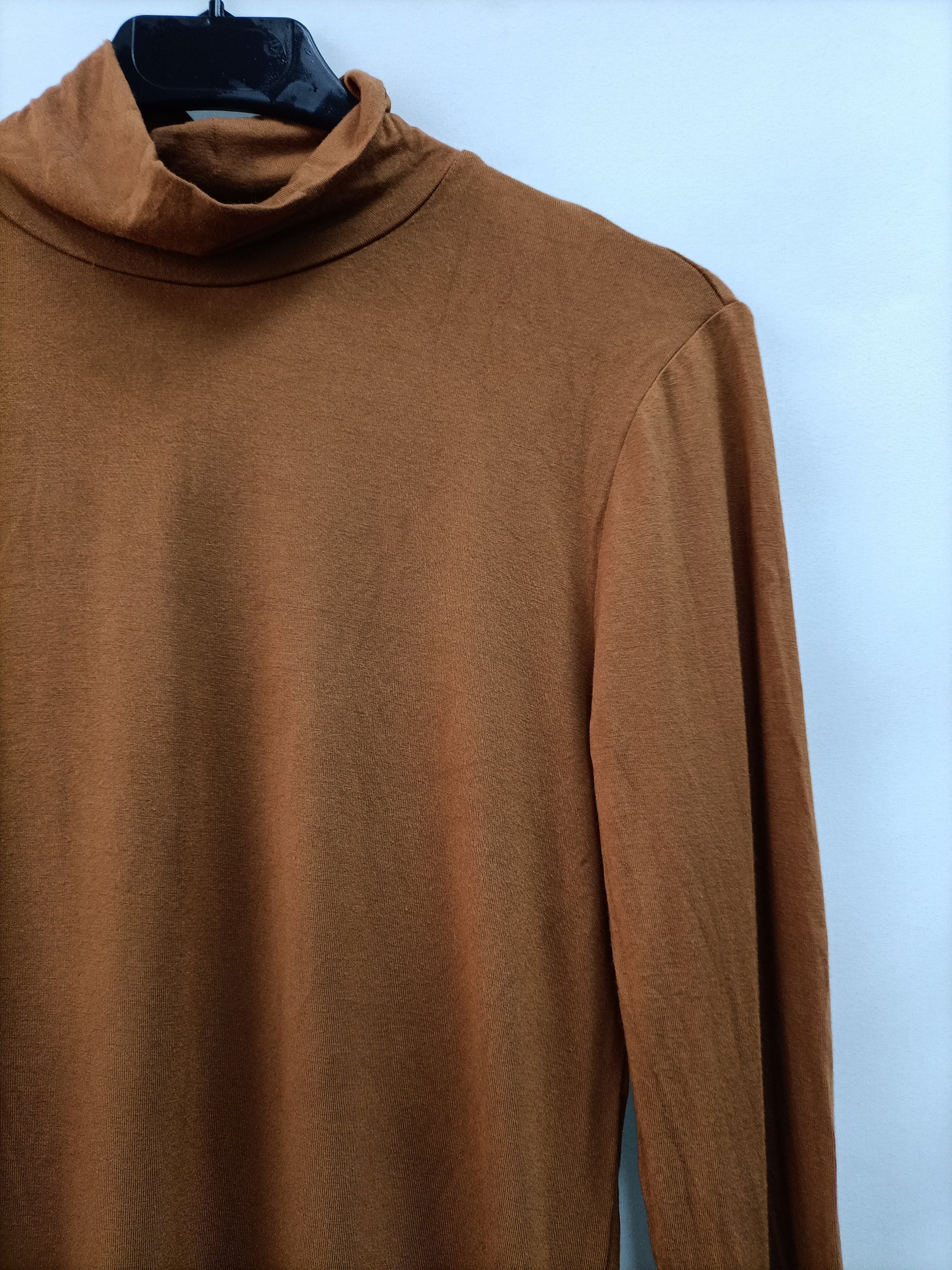 Top/jersey finito camel cuello vuelto.Largo 63 cm