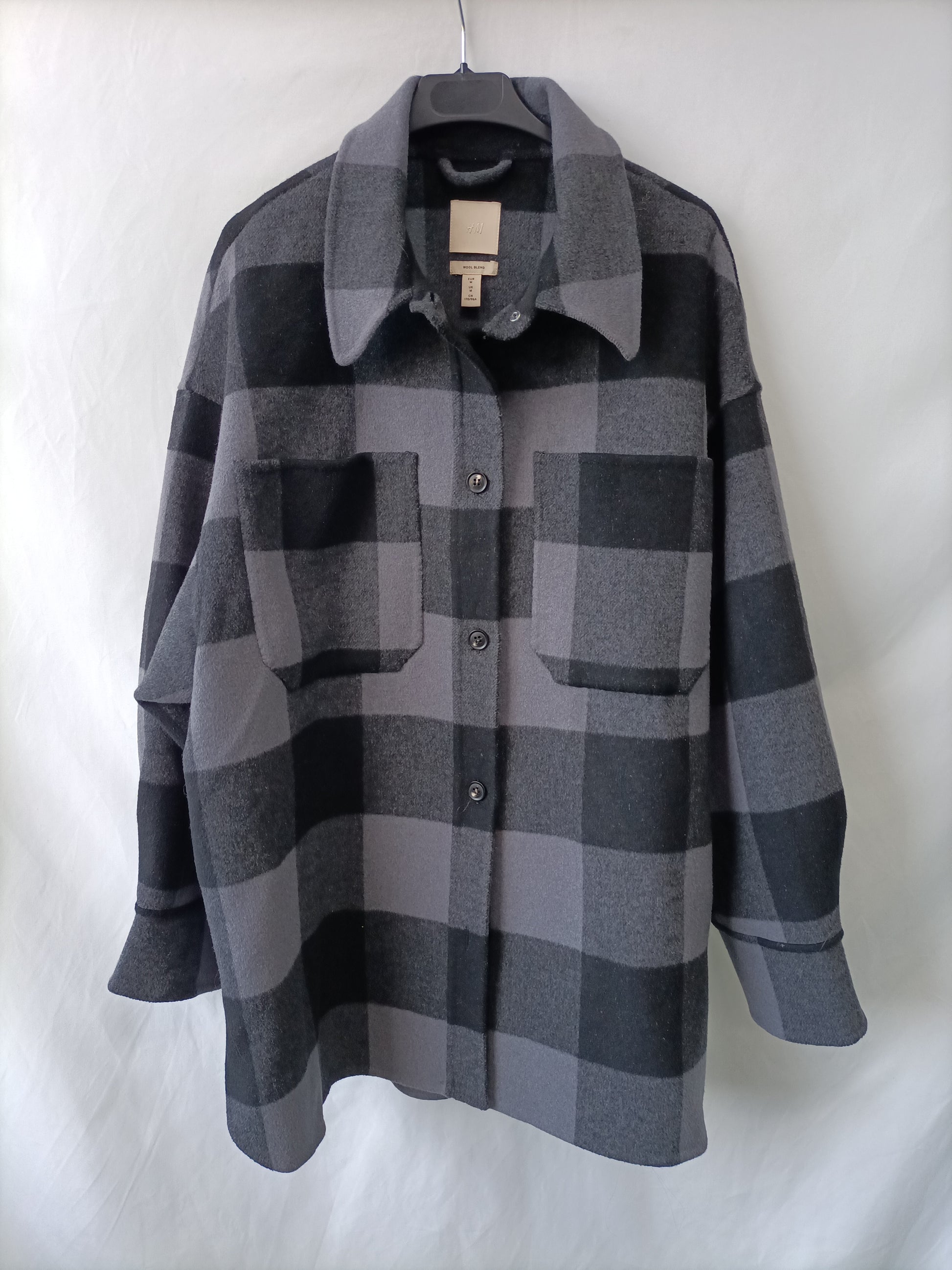 Abrigo oversized de cuadros grises de franela. No elástico. De sisa a sisa 66 cm largo 80 cm