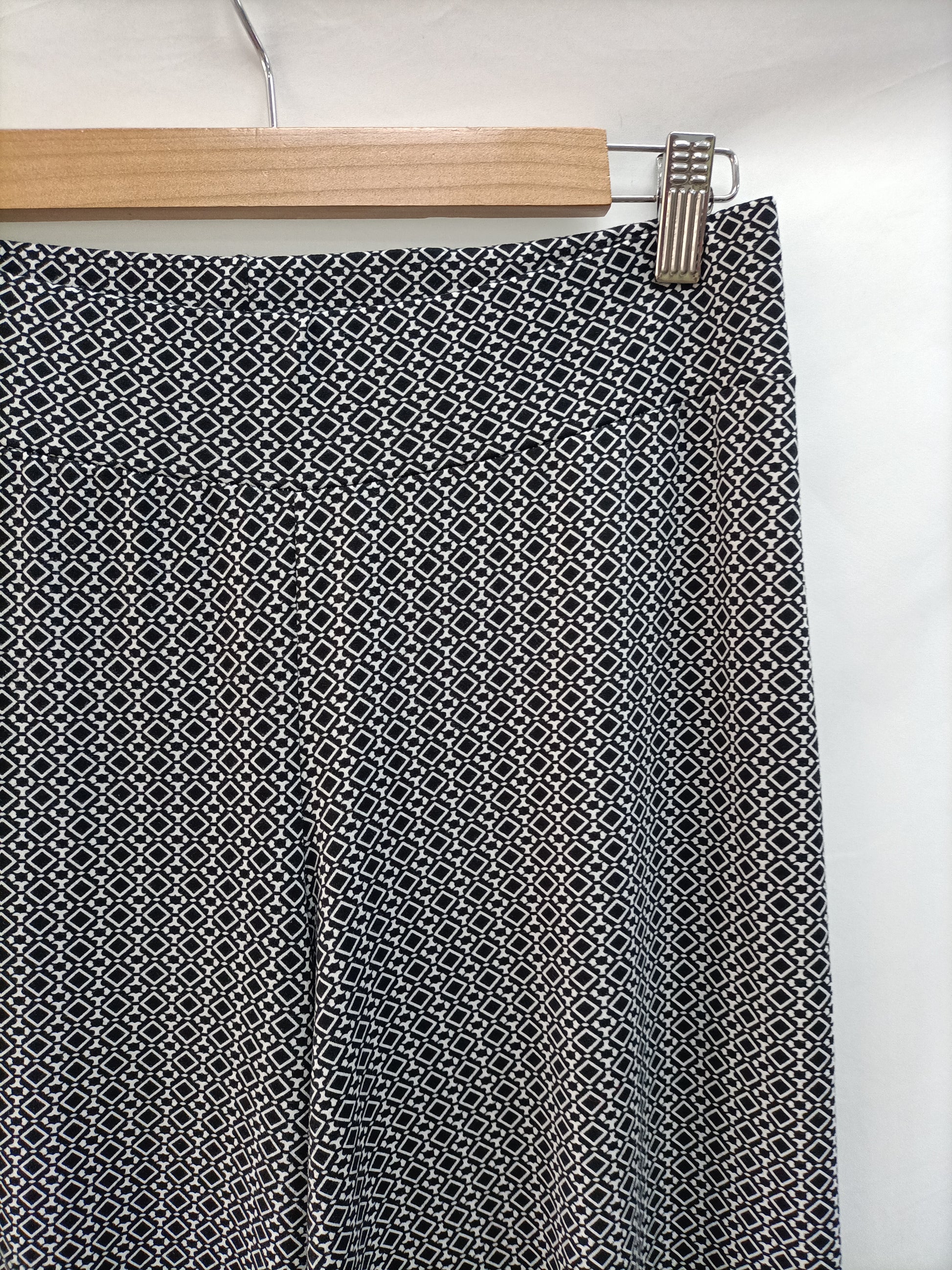 Pantalón culotte blanco y negro con estampado geométrico. Tejido estilo licra elástico.