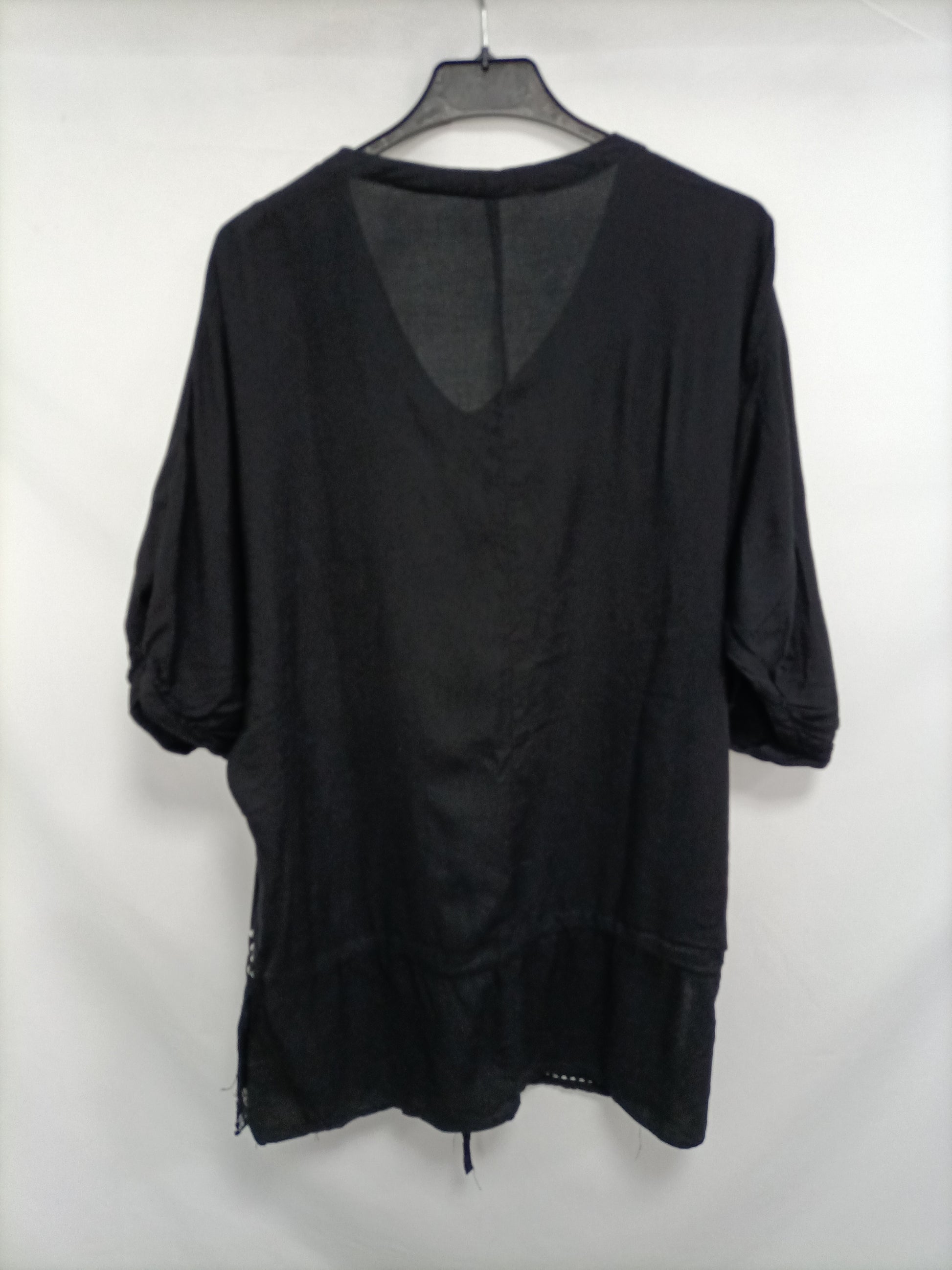 Blusa negra estilo oversized con detalles bordados blancos. Ajustables en la cintura. De sisa a sisa 61 cm cm largo 80 cm