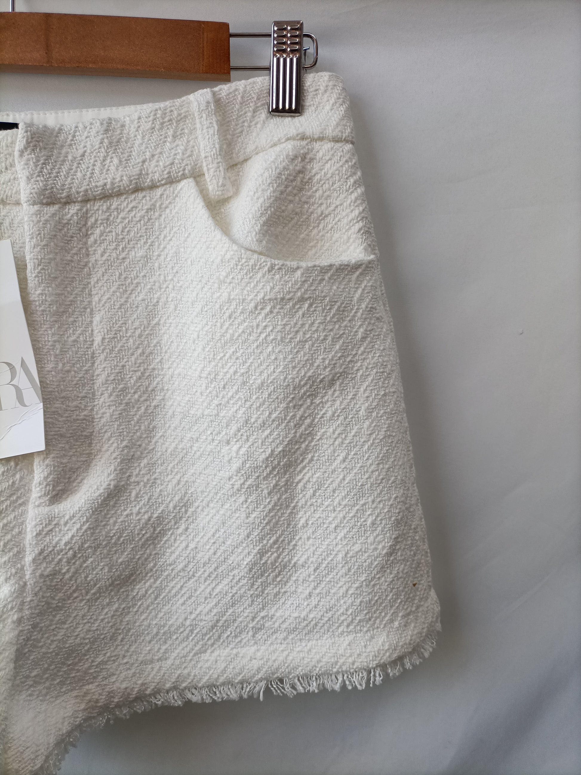 NUEVO CON ETIQUETA. Pantalon corto blanco de tejido tweed. Cintura 36 cm Largo 33 cm