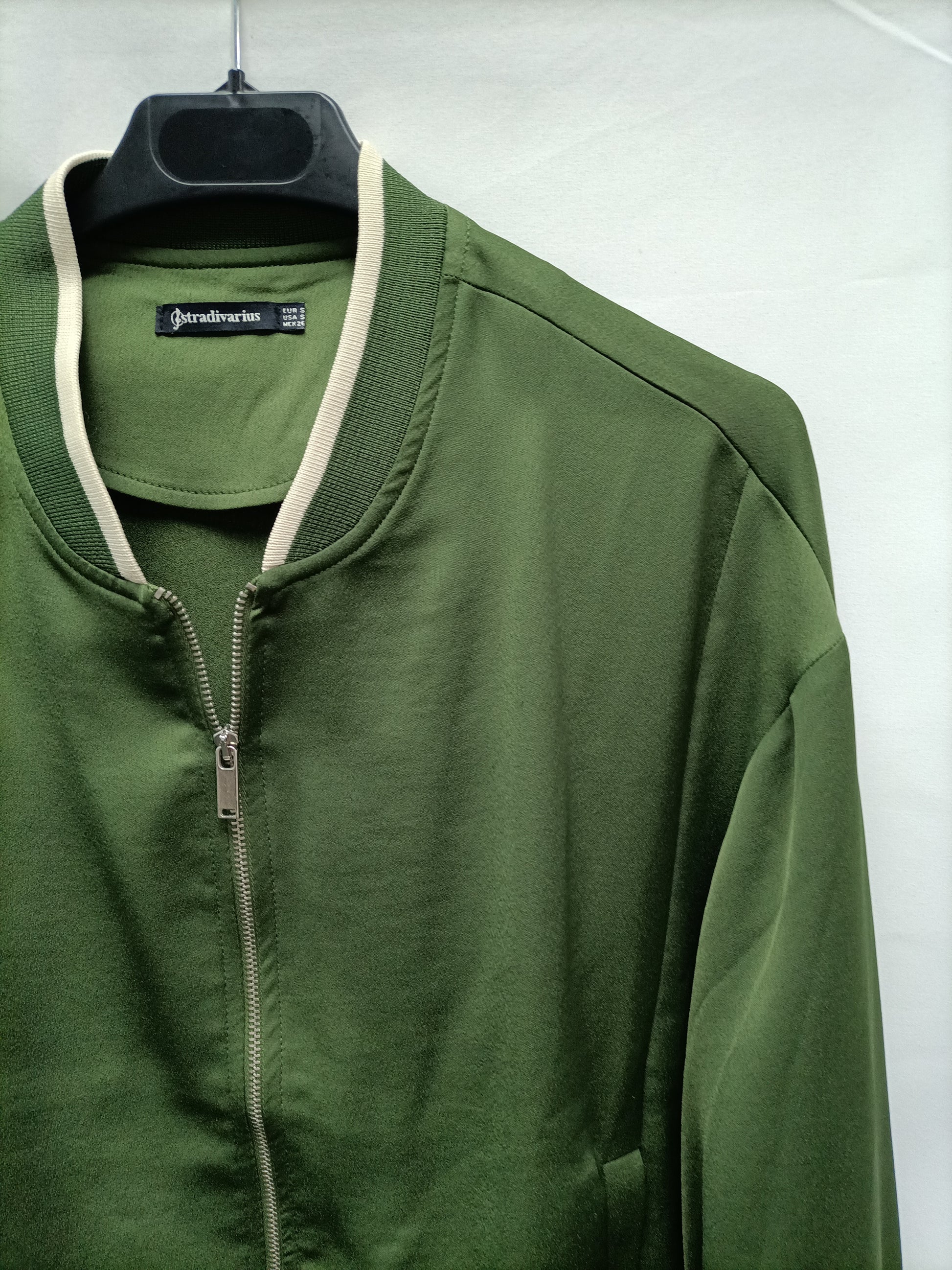 Bomber verde finita y fluida. Semielástico. De sisa a sisa 53 cm largo 60 cm
