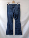 Pantalón denim de campana efecto desgastado. Cintura 36 cm Largo 103 cm.