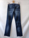Pantalón denim ligeramente acampados efecto desgastado. Cintura 35 cm Largo 105 cm.