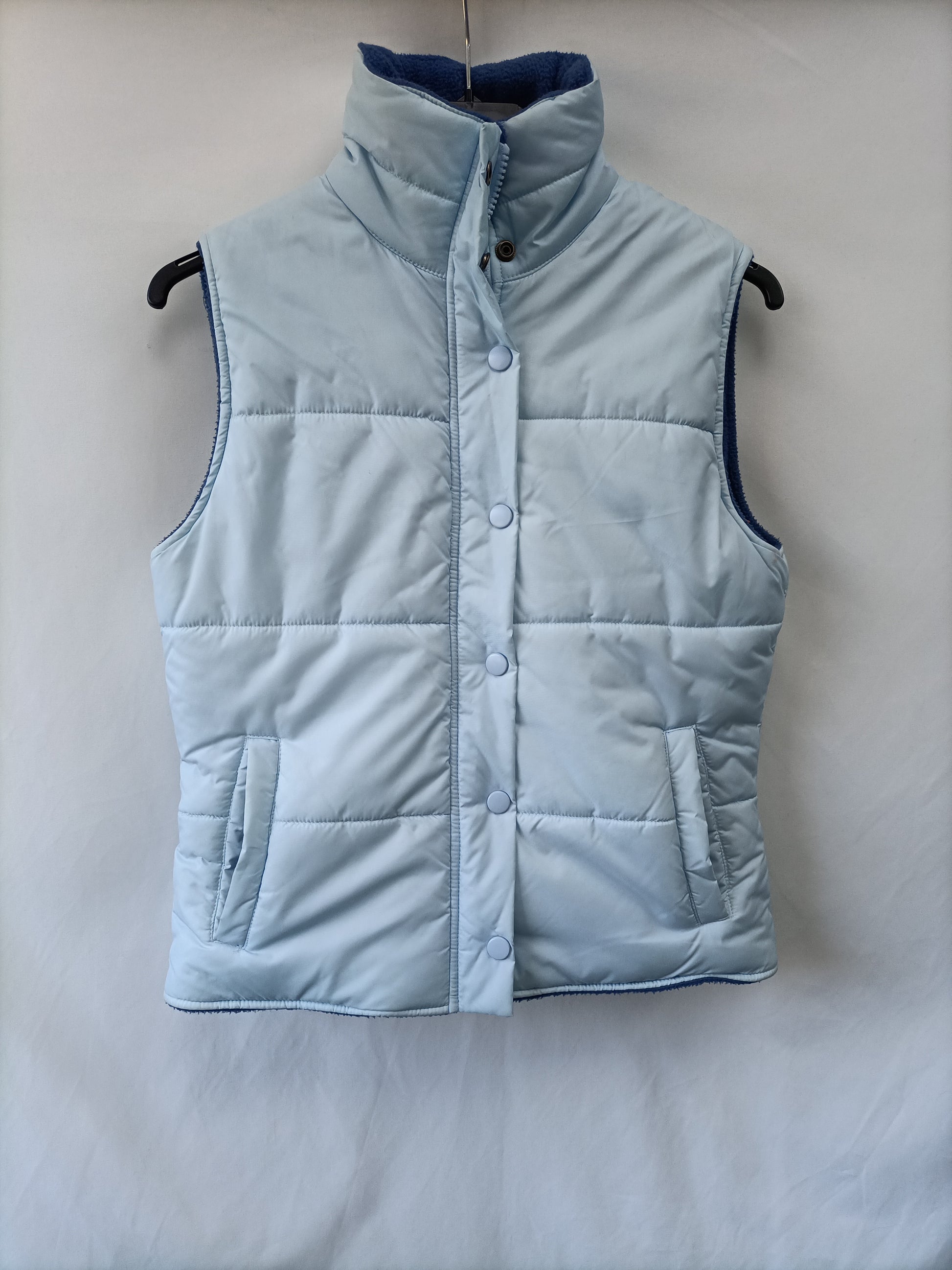 Plumas azul claro sin mangas interior de forro polar.