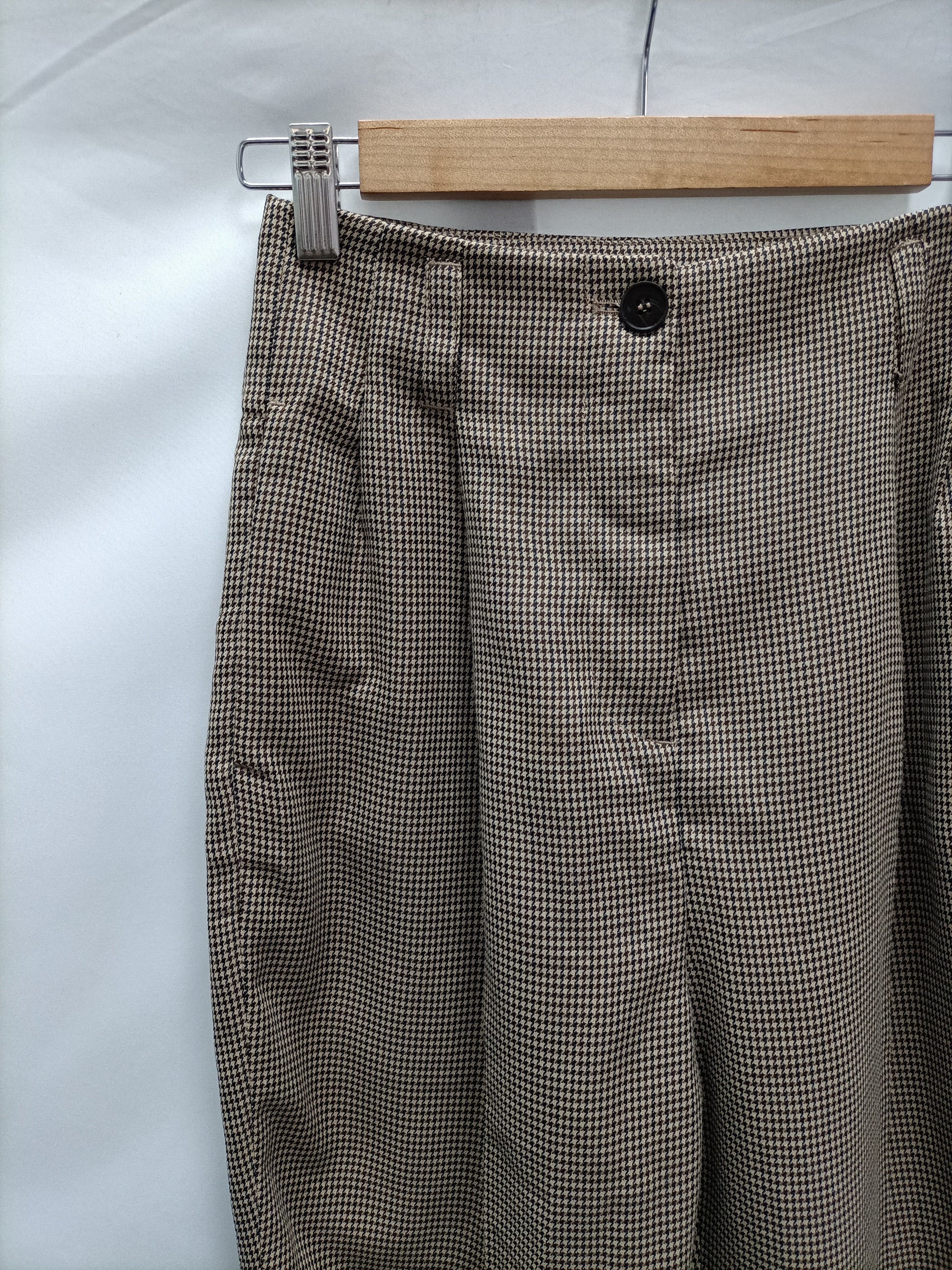 Pantalones pata de gallo tonos marrones. De vestir con pinzas rectos. No elástico. Cintura 34 cm. Largo 104 cm