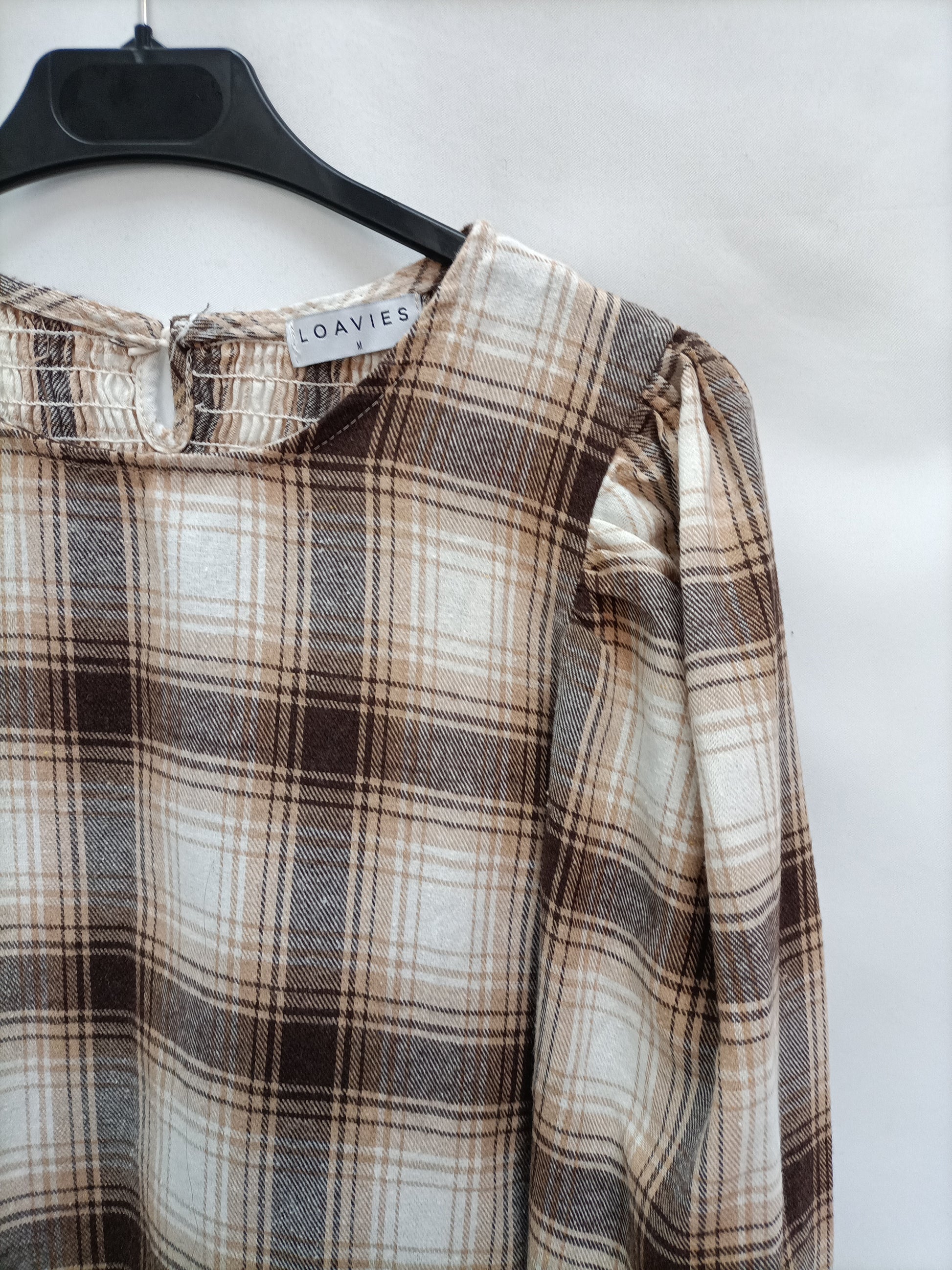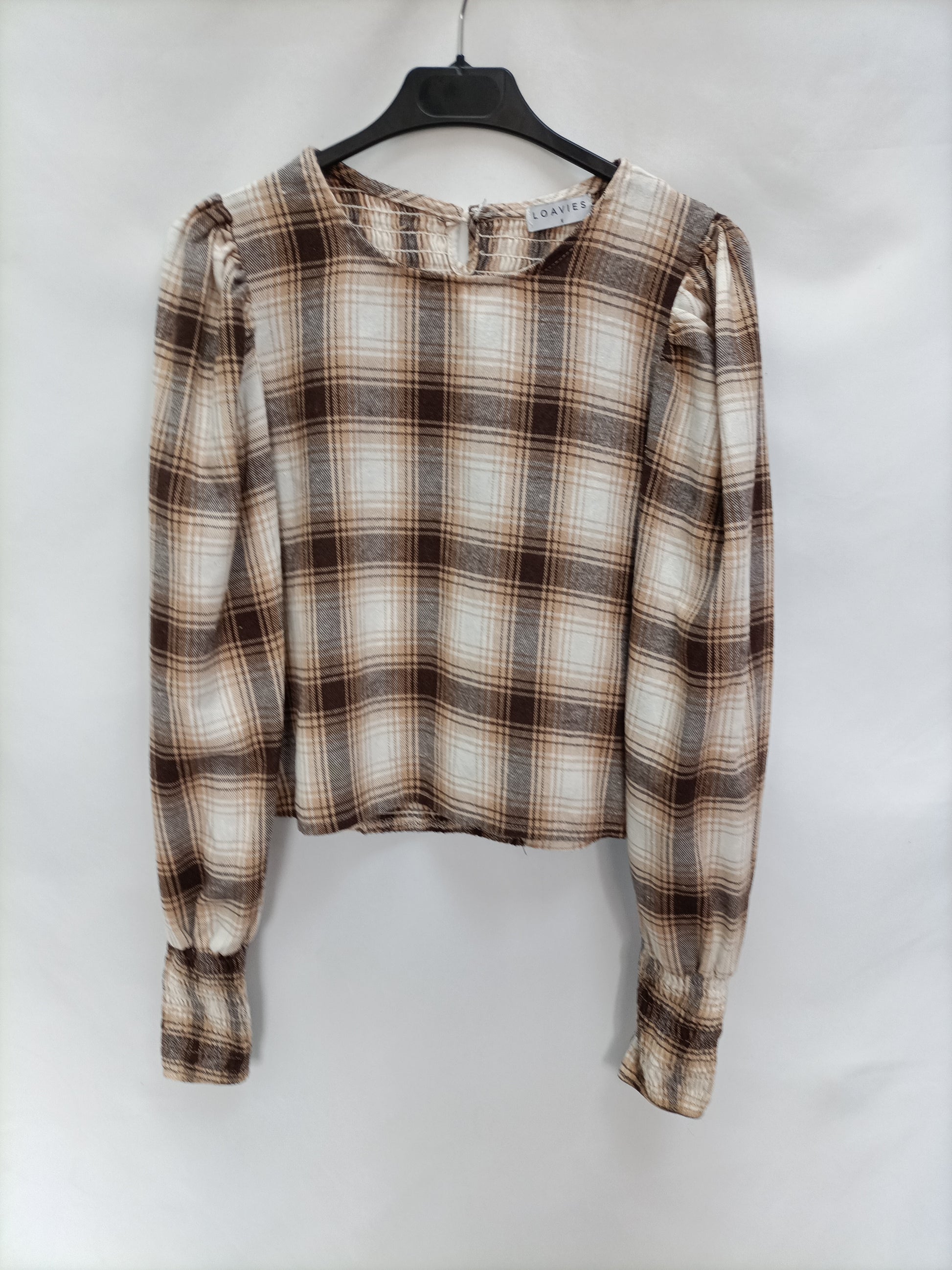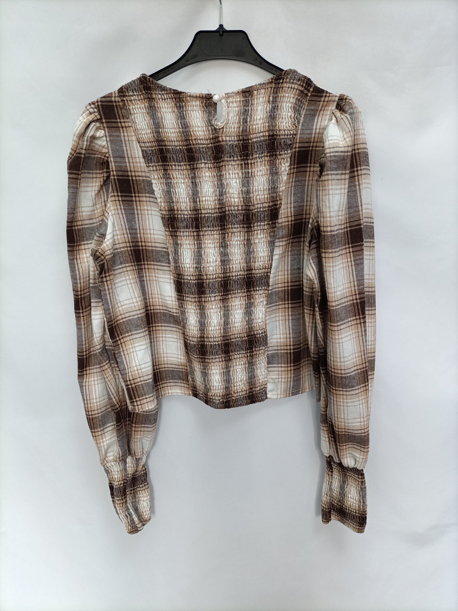 Top/blusa.corts de cuadro en tonos marrones cl mangas ligeramente Abullonadas con los puños elásticos de nido de abeja. Espalda elástica. de sisa a sisa 46 cm Largo 47 cm