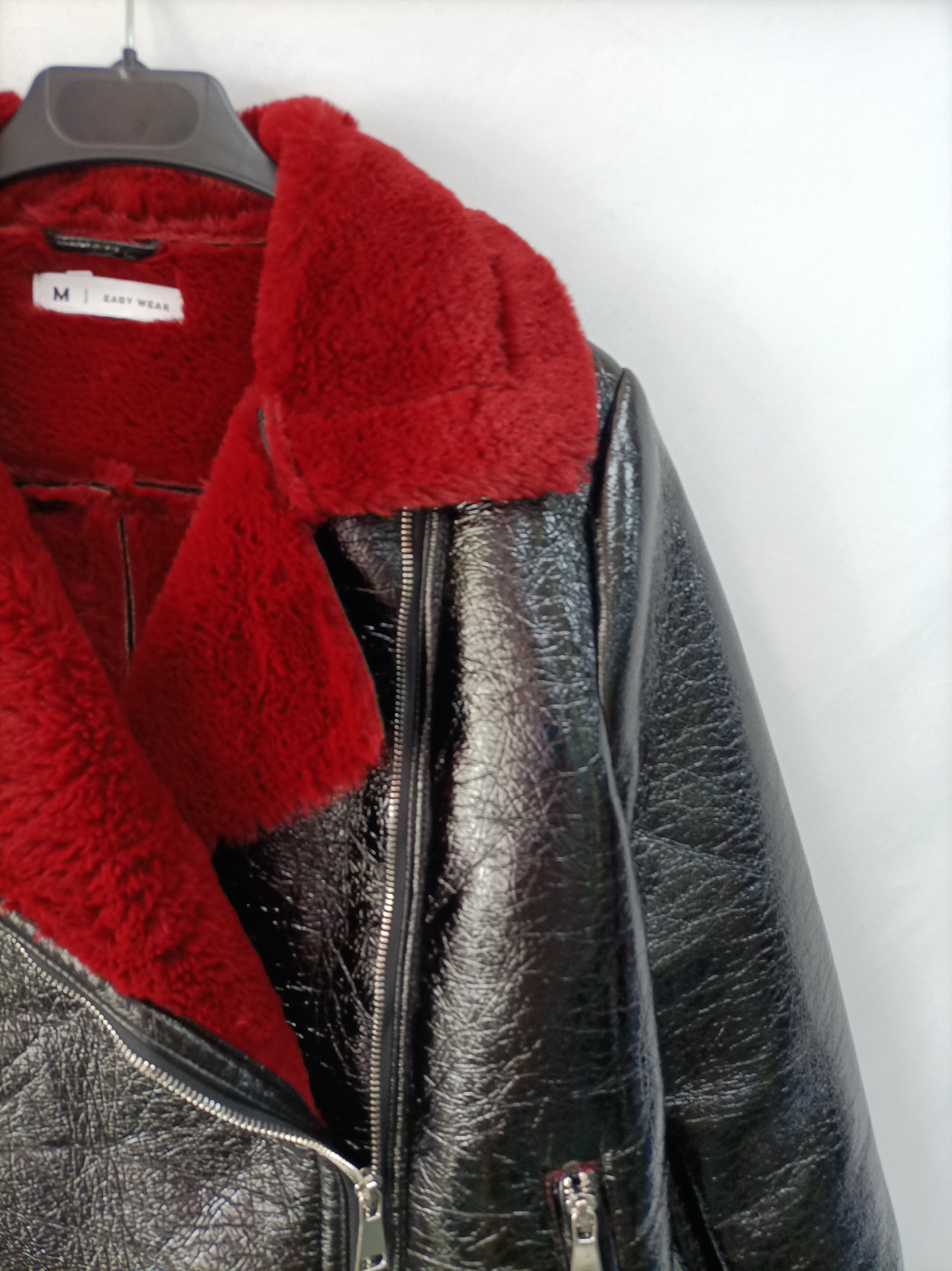 Biker negra estilo vinilo con Interior de pelito burdeos. De sisa a sisa 51 cm Largo 61 cm