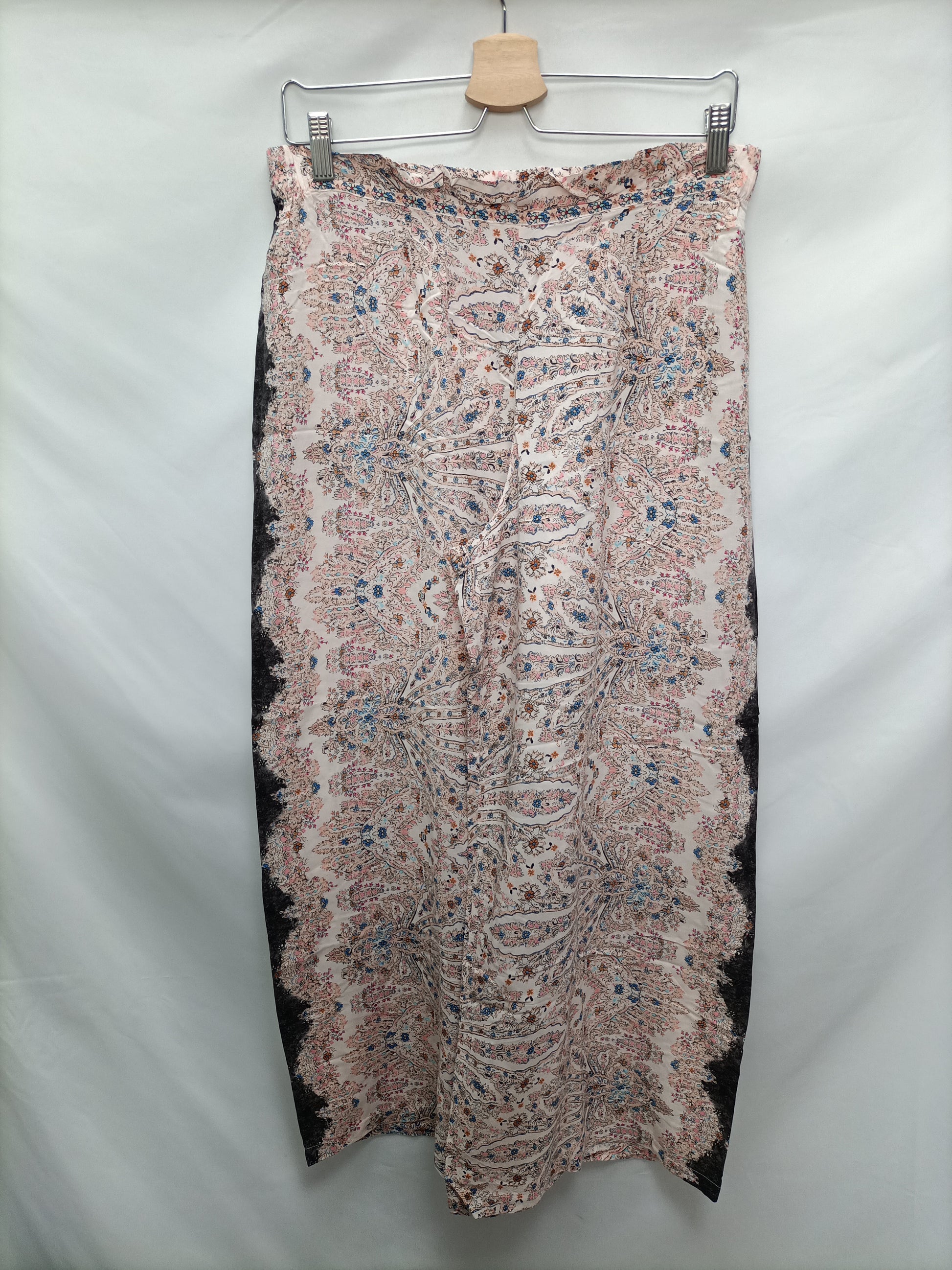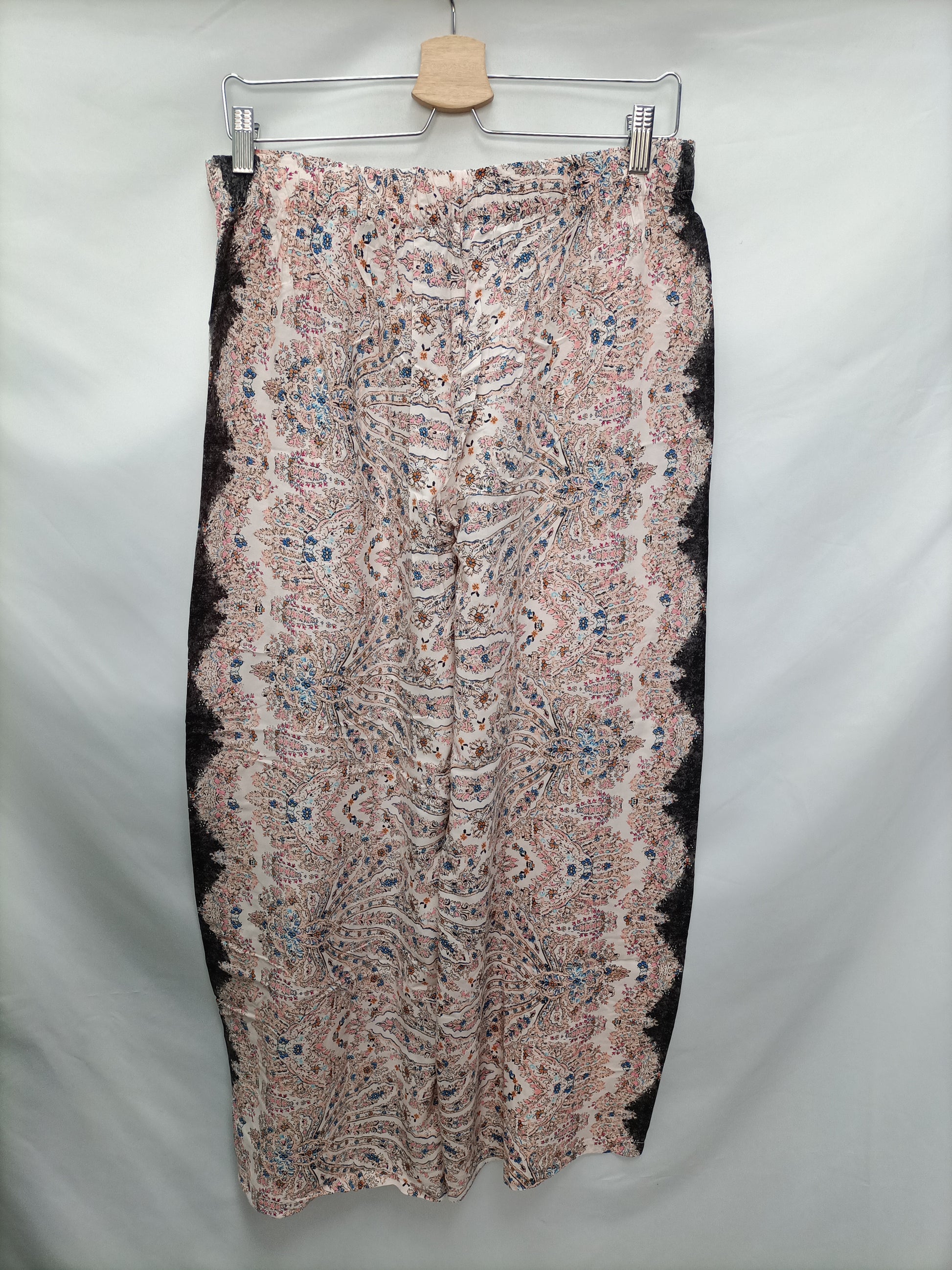 Pantalón Palazzo finito con esta estampado de amebas en tonos rosas. Largo 99 cm