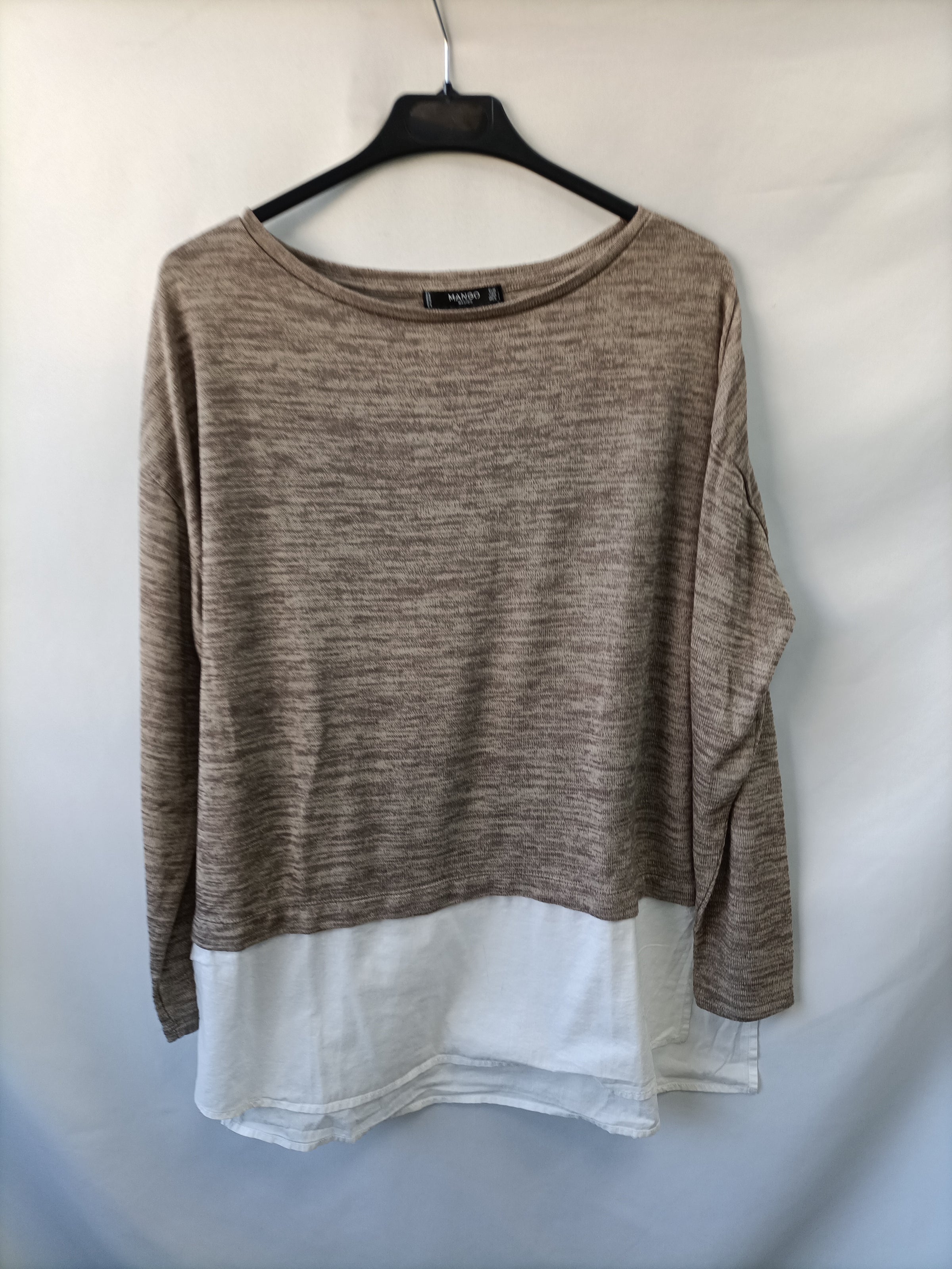 Top/ jerséis jaspeado en tonos marrones con la parte de abajo estilo blusa. Elástica. Largo 69 cm