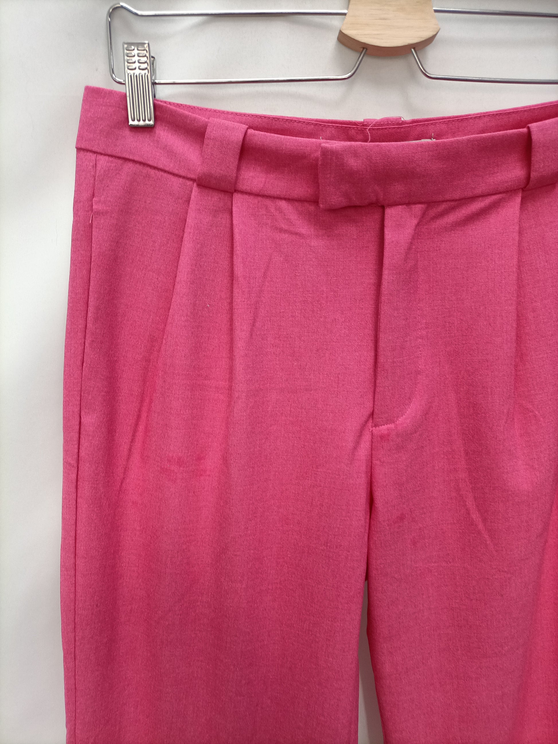 Pantalón fluido y recto rosa fucsia con pinzas. Finito y no elástico. Cintura 39 cm Largo 104 cm