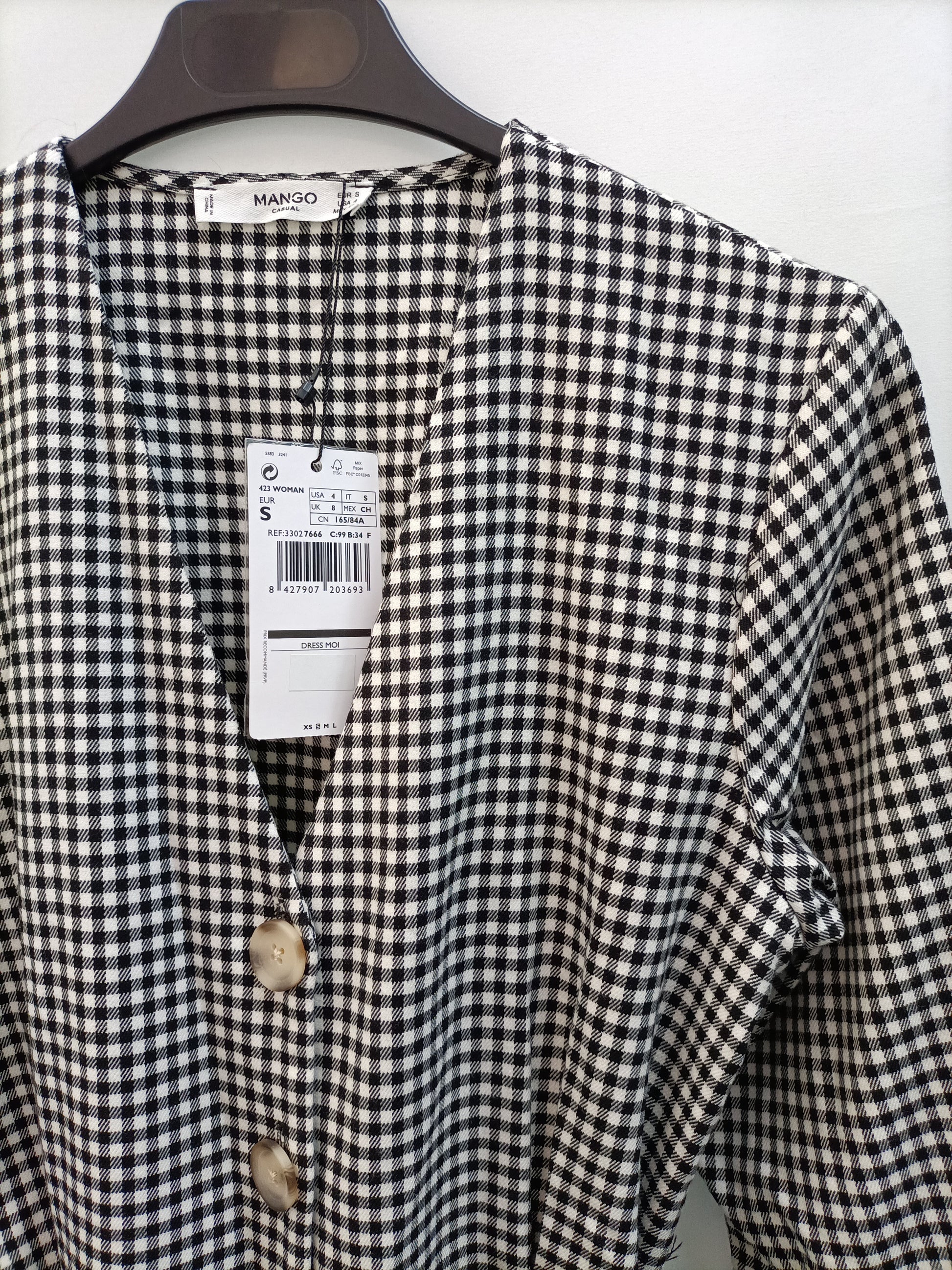 MANGO. Vestido midi cuadros T.s