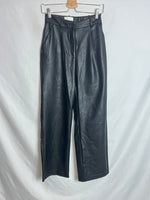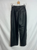 Pantalón ancho negro efecto piel con pinzas. semirelástico.
