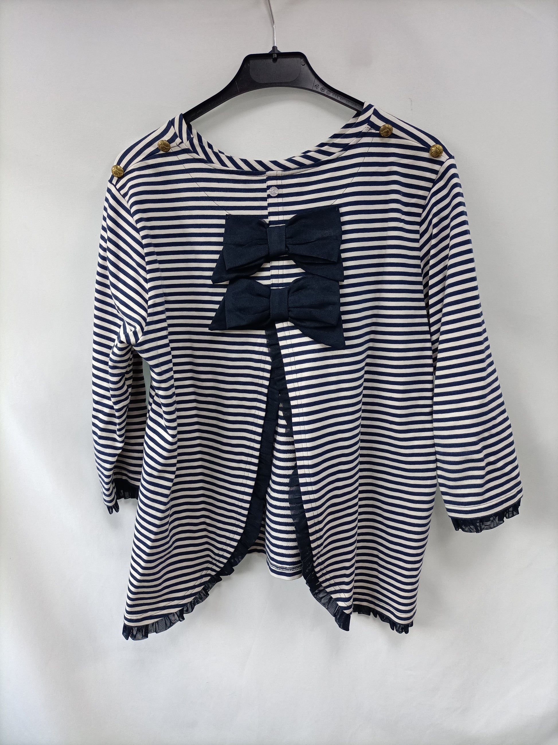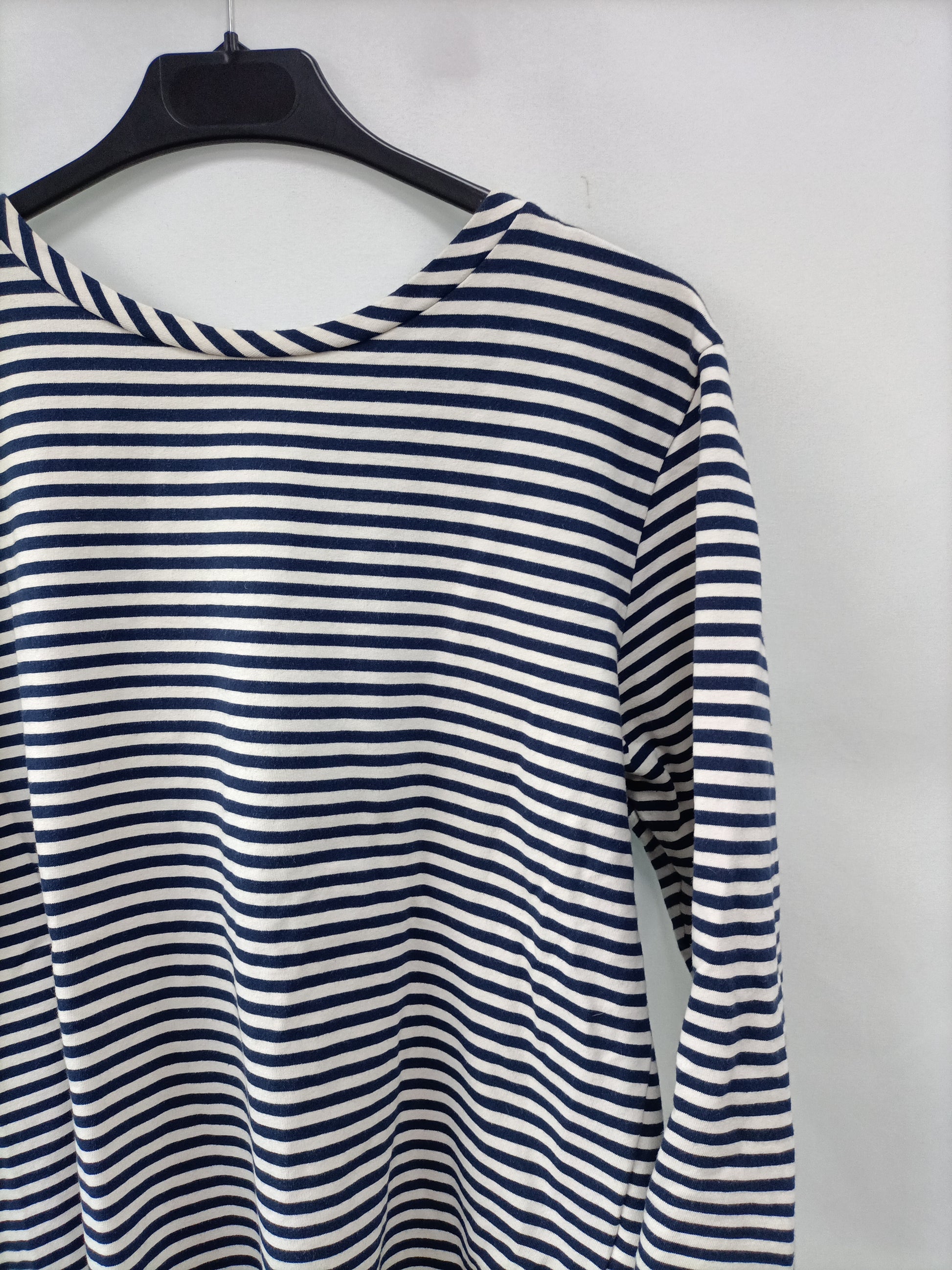 Camiseta de rayas marinerasvcin mini volante y lazo en la espalda. largo 52 cm