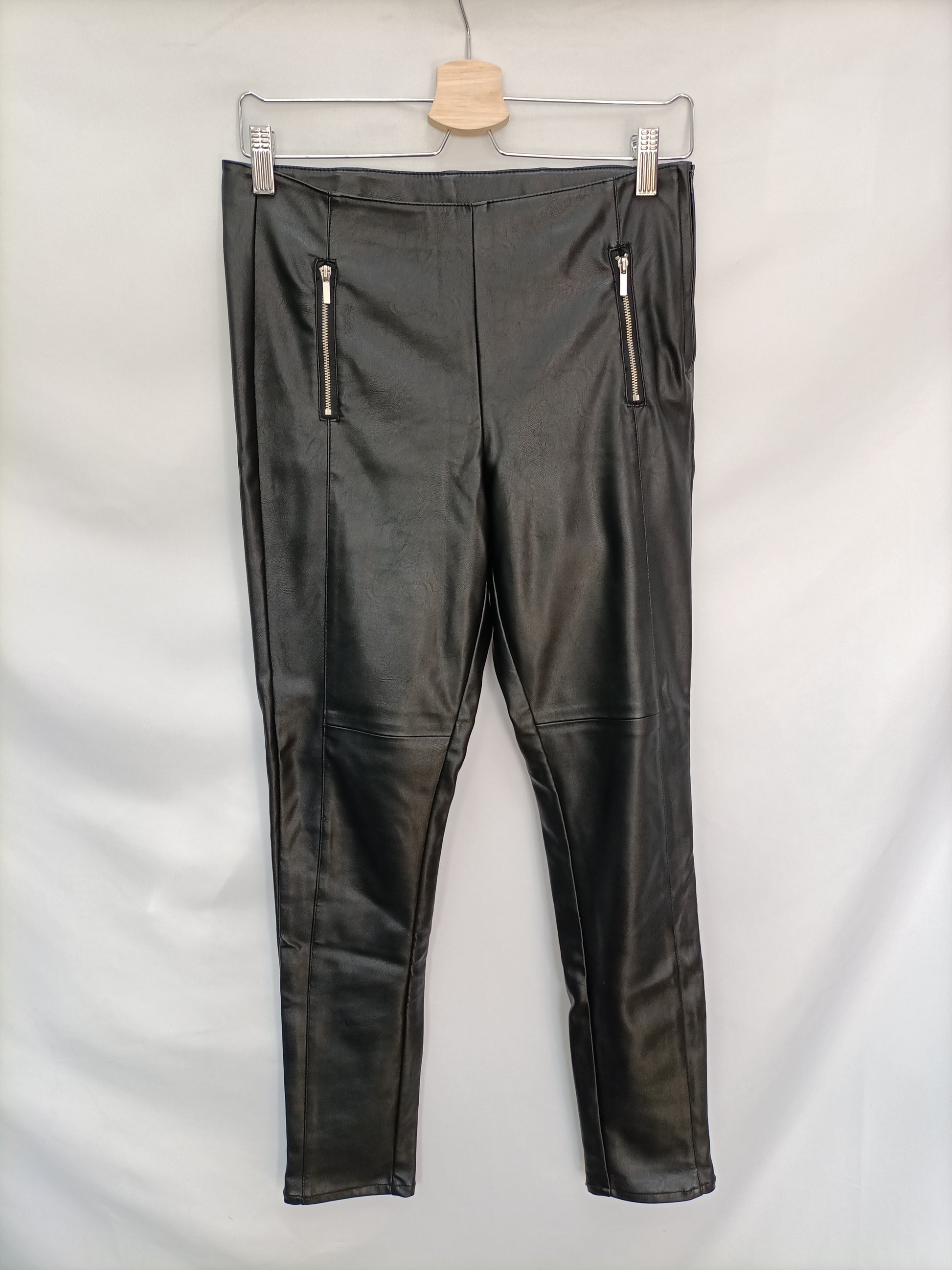 Pantalones negros de polipiel con cremalleras estilo leggings,No elastico. Cintura 36 largo 97 cm