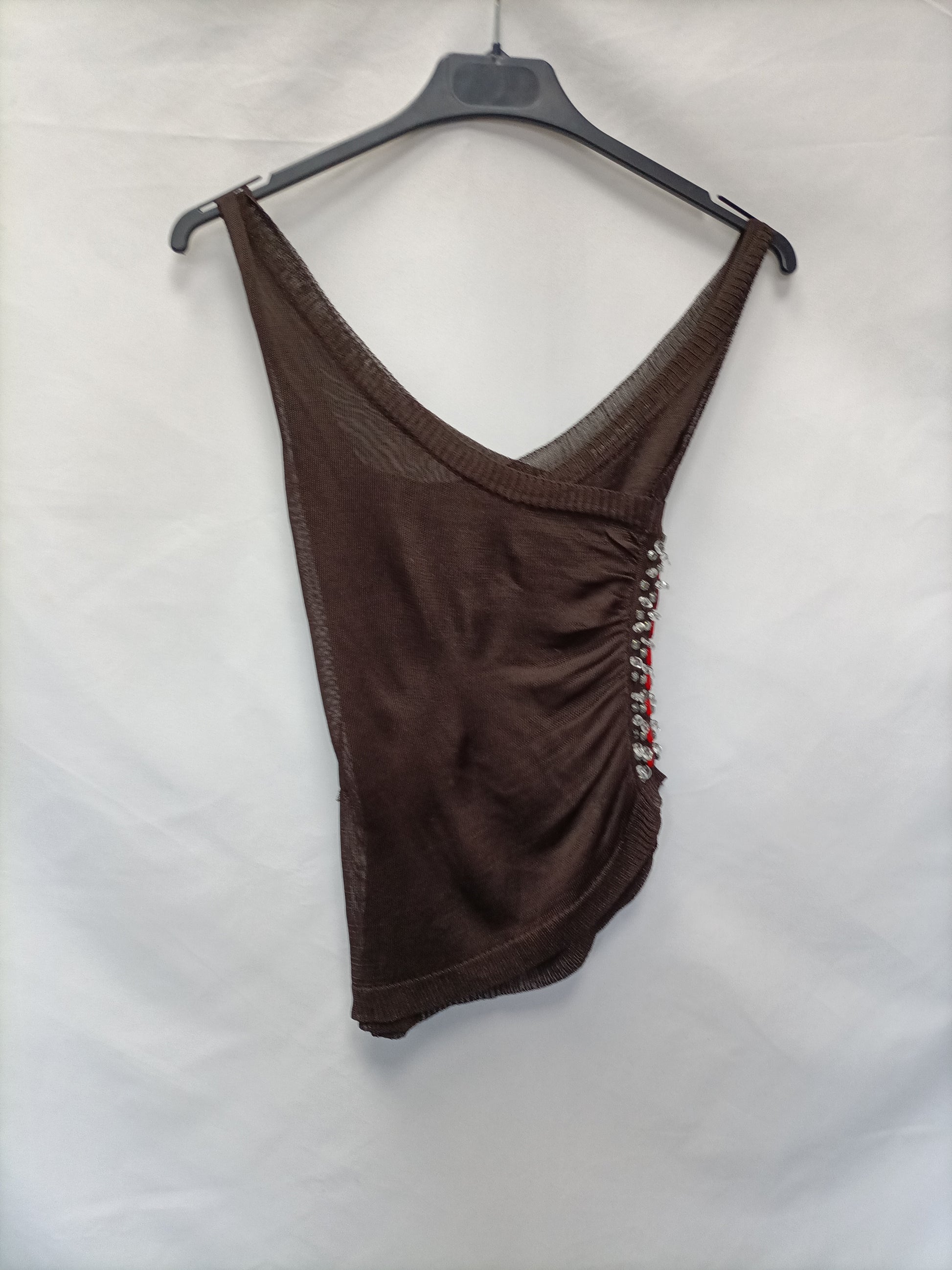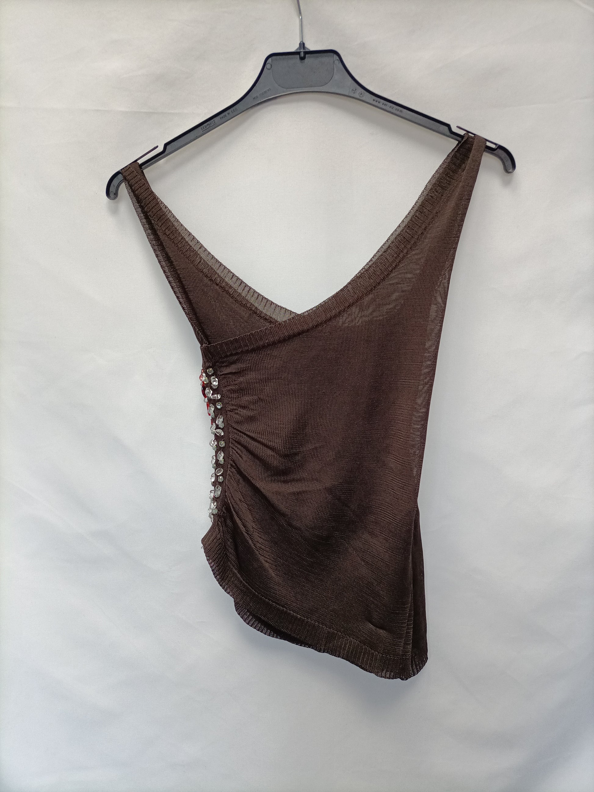 PEDRO DE HIERRO. Top marrón pedrería T.s