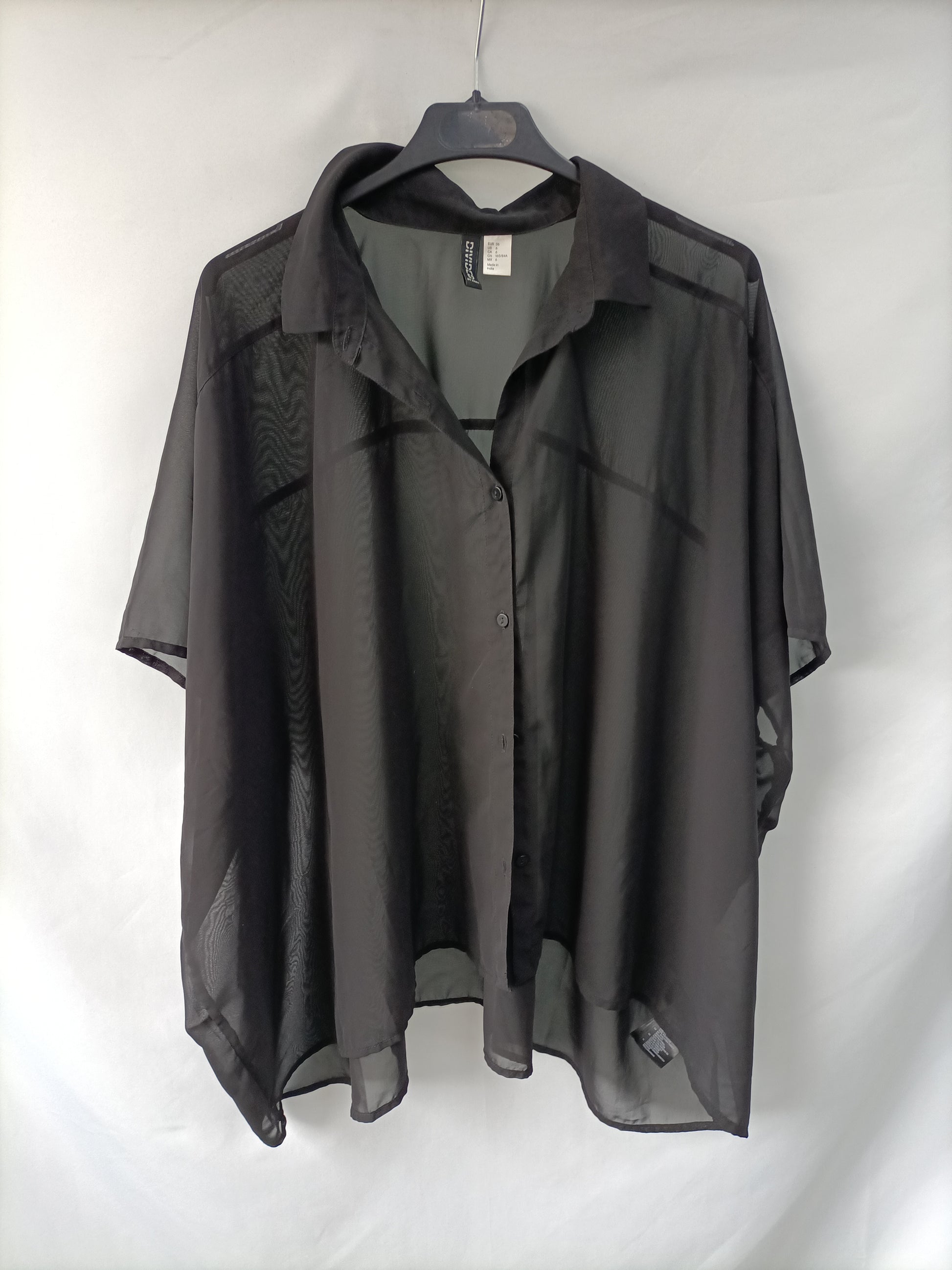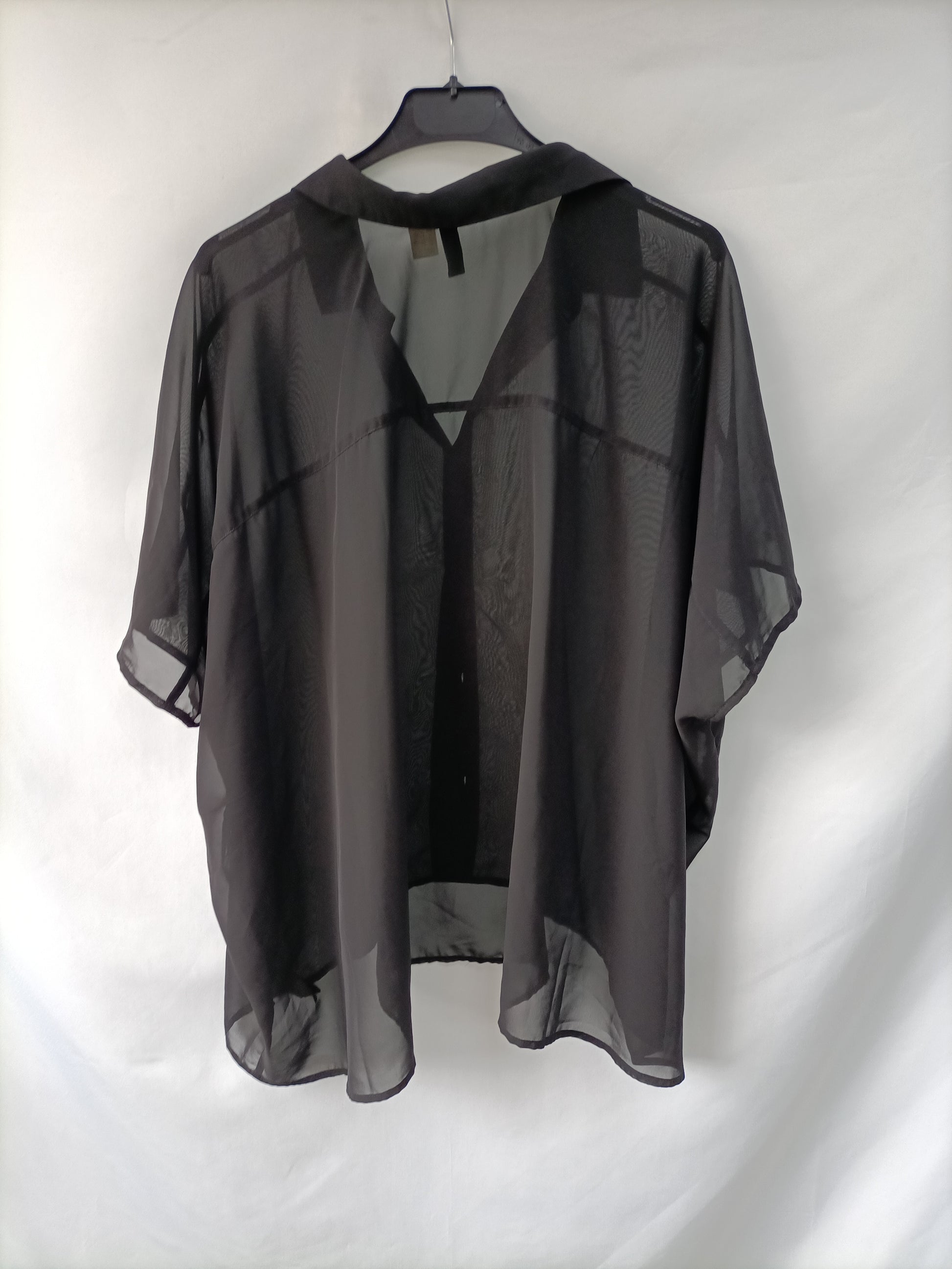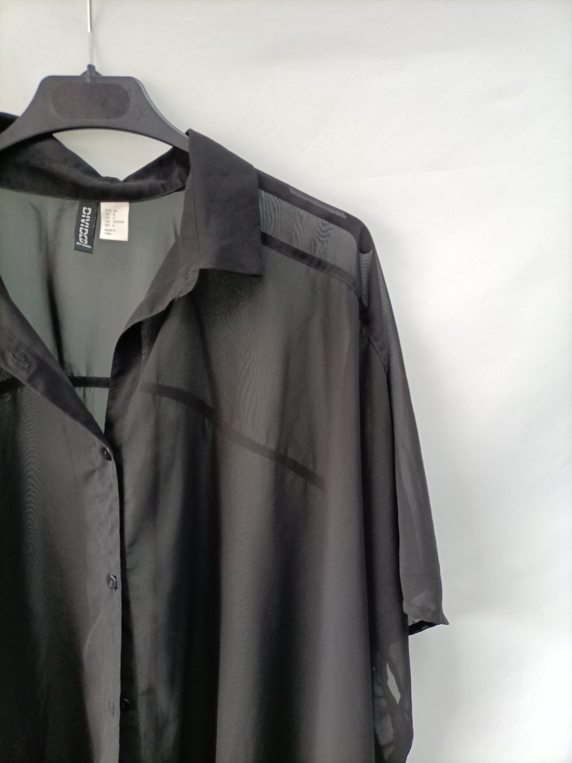 Blusa negra estilo oversized semitransparente . largo 67 cm