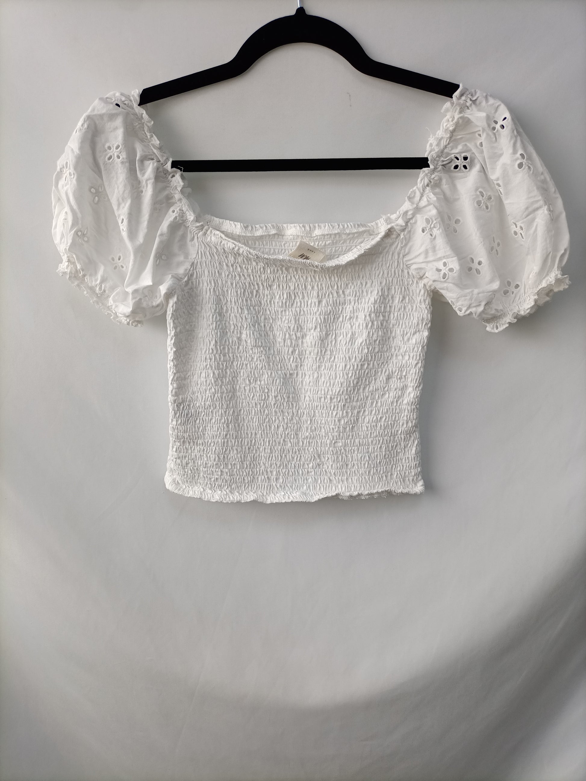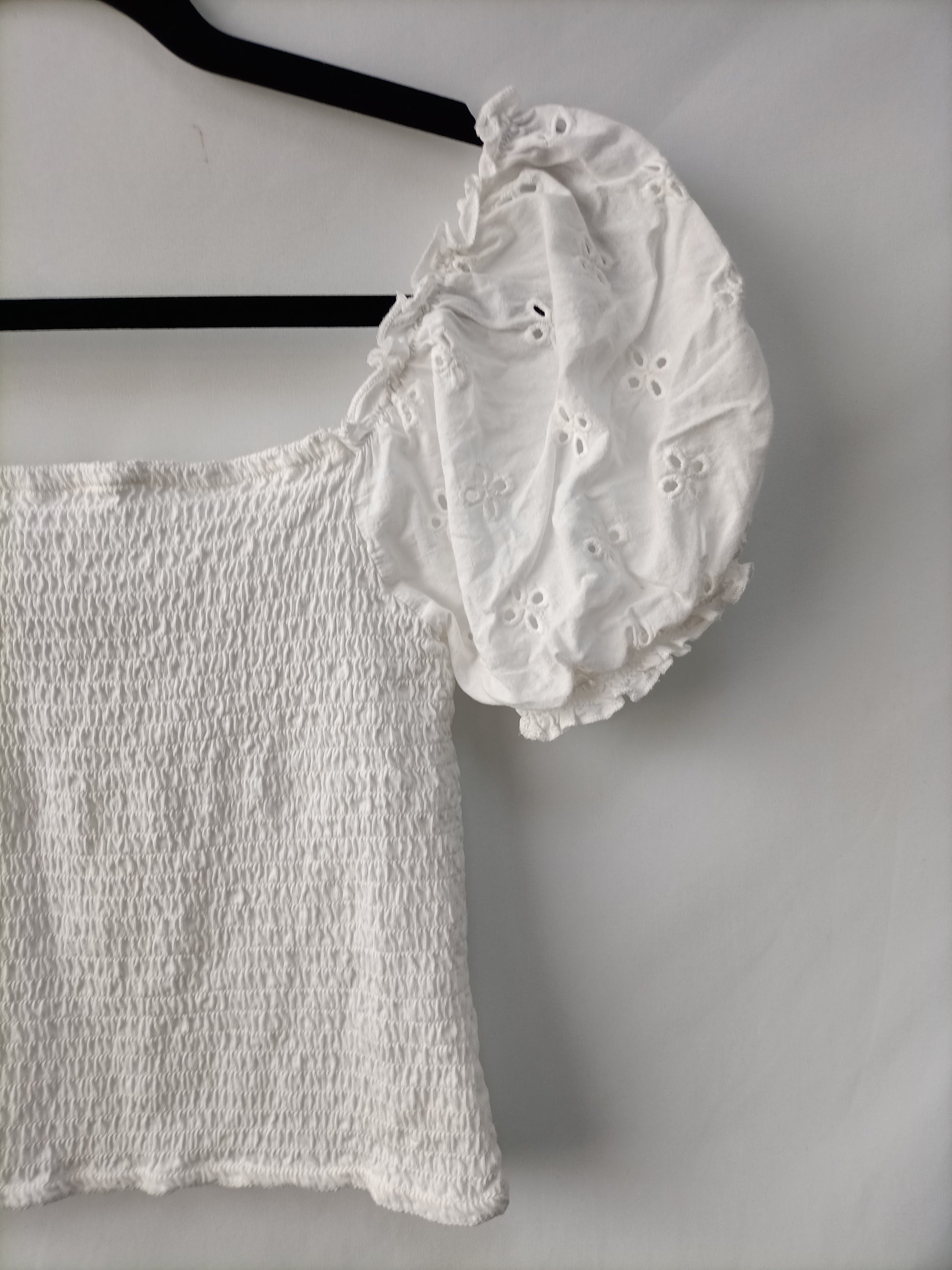 Top blanco nideo de abeja con las mangas Abullonadas. largo 29 cm.
