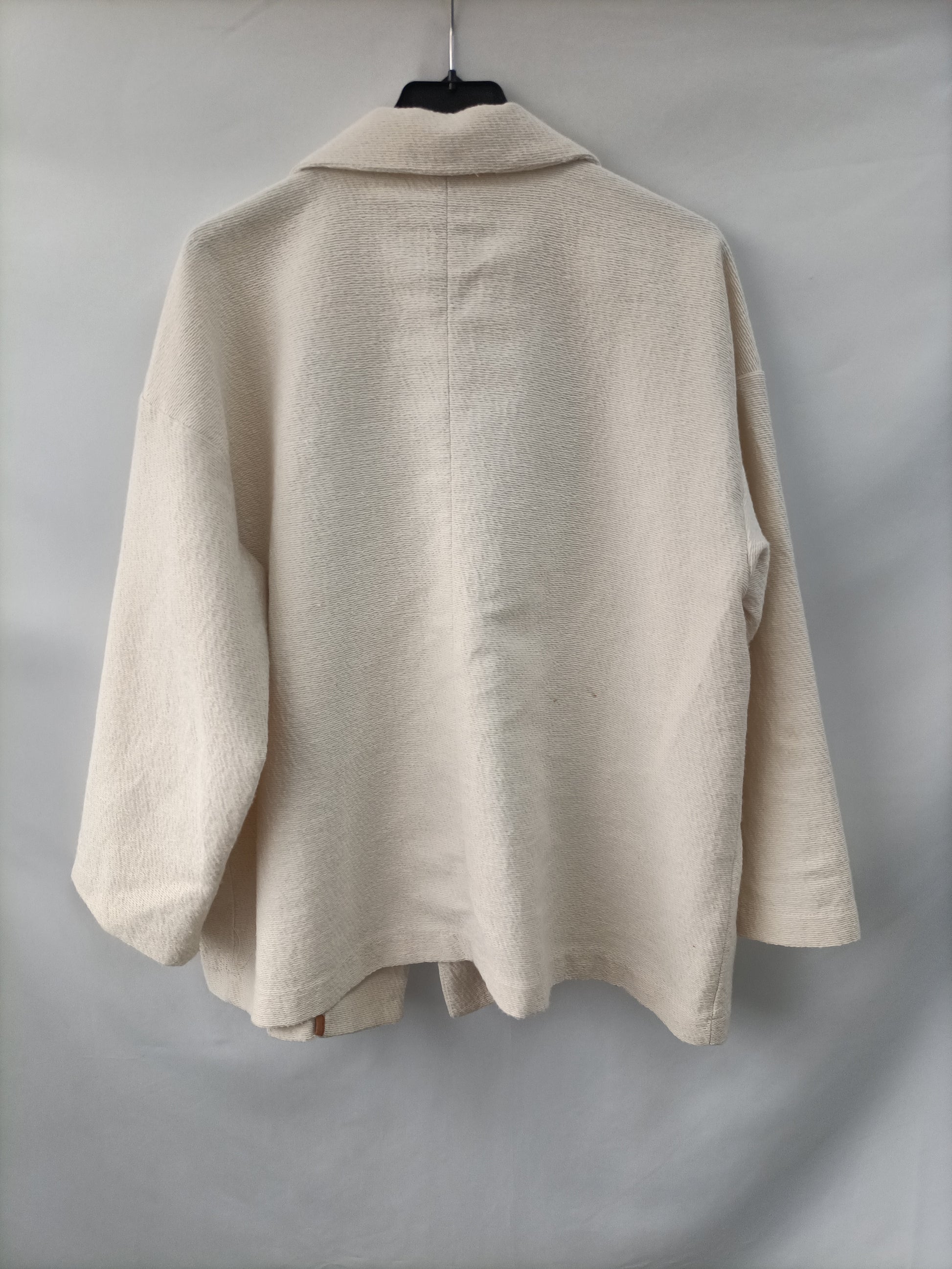 Blazer beige de algodón estilo oversized con botón grande. No elastica. A De sisa a sisa 60 cm largo 69 cm