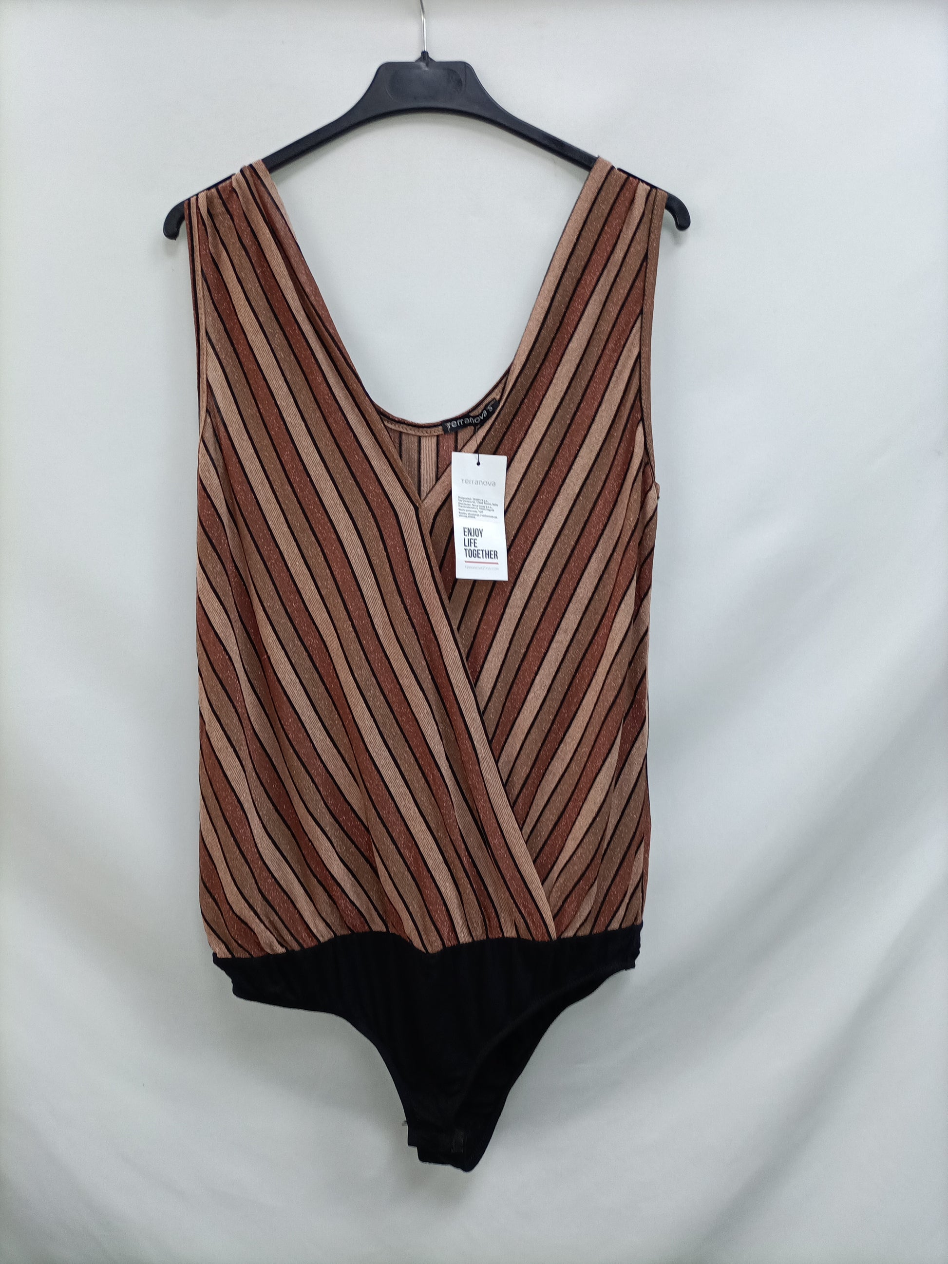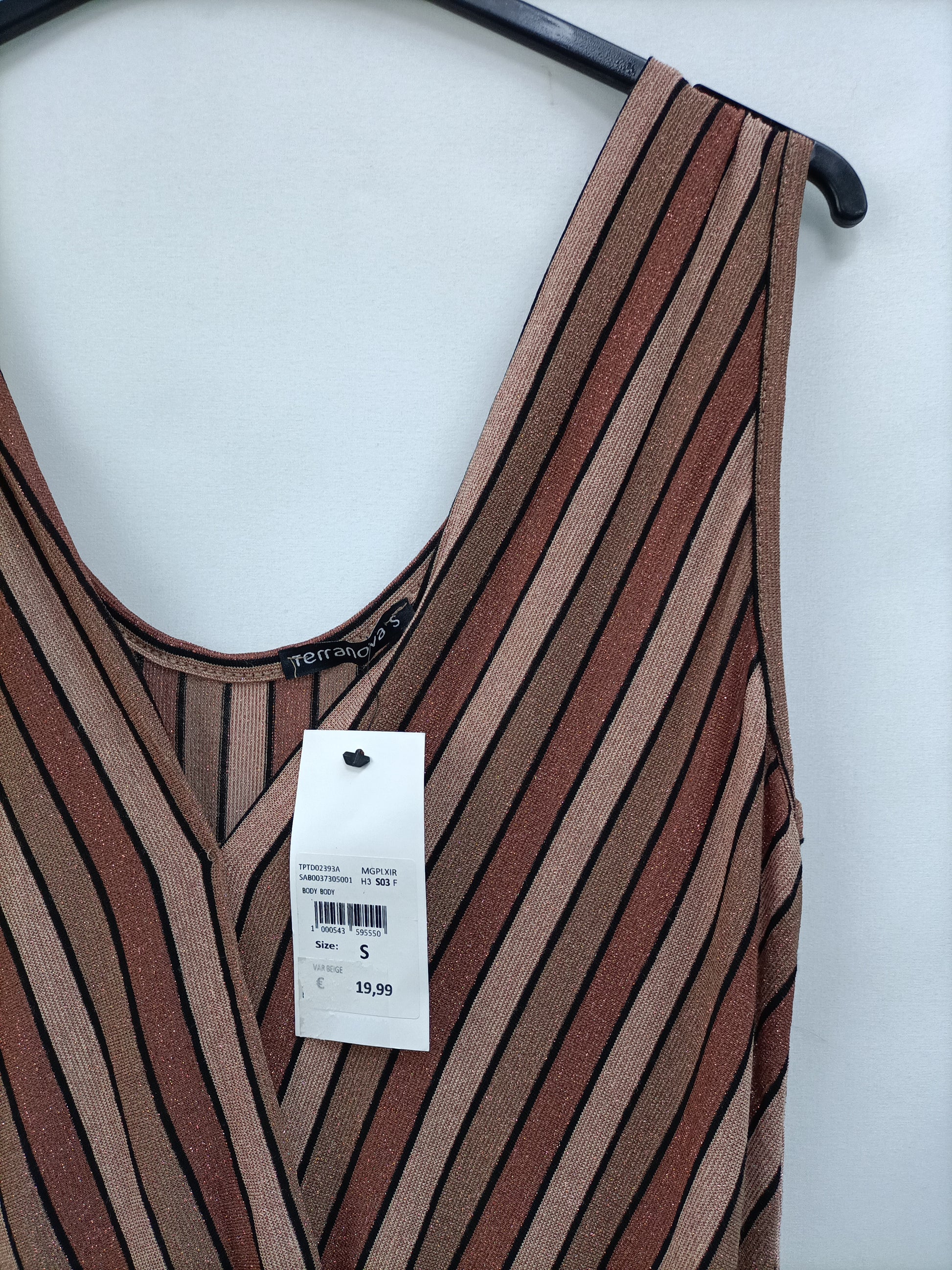 NUEVO CON ETIQUETA. Voy de rayas con detalle de hilos metálicos. Largo 80 cm