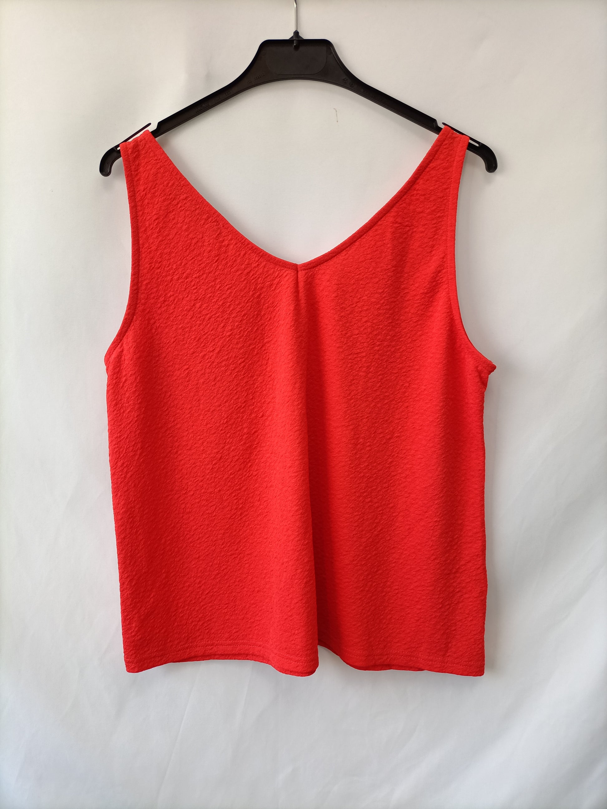 Tops rojo tejido textura. Sin mangas tirante ancho.Largo 57 cm