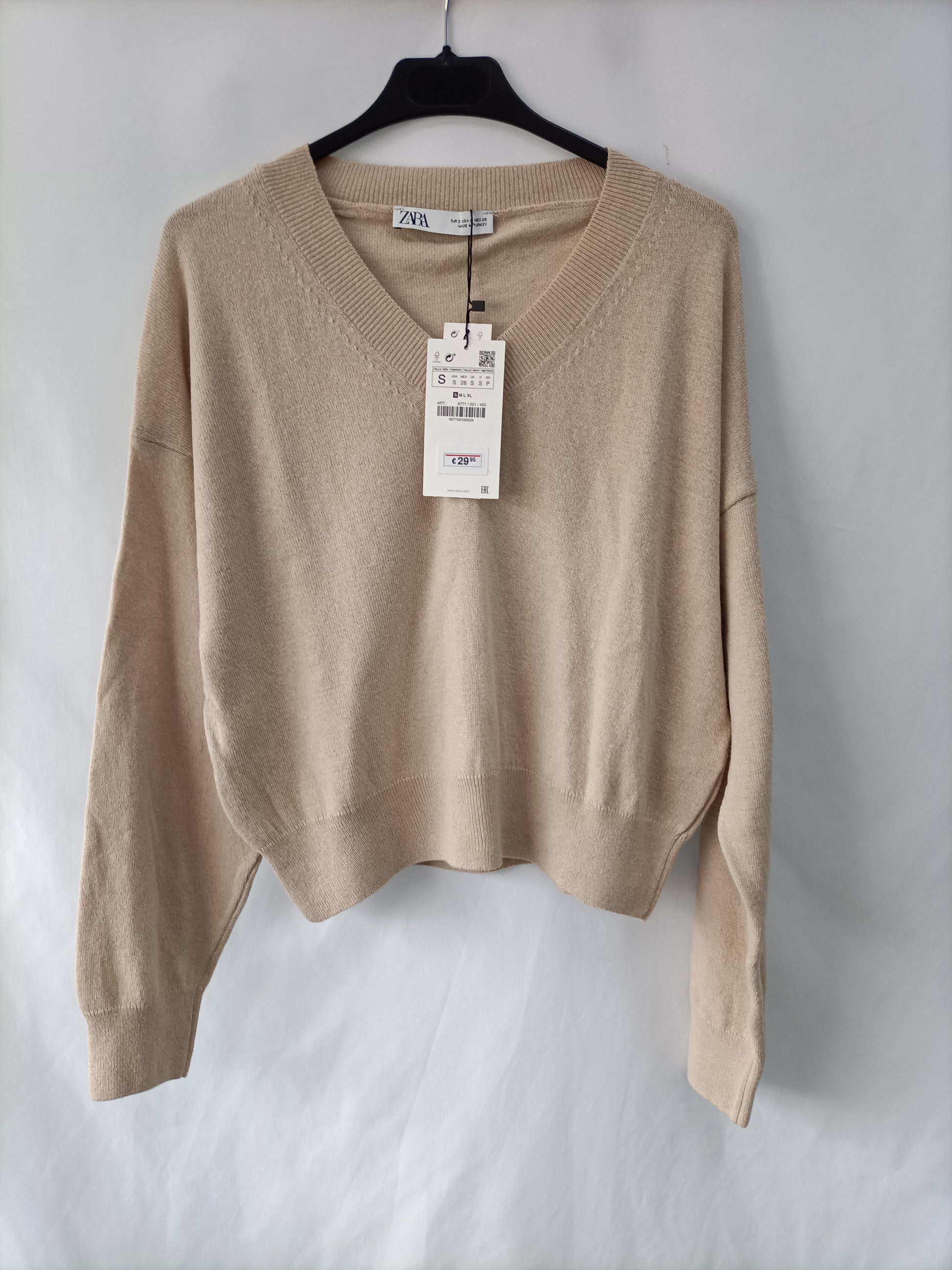 NUEVO CON ETIQUETA. jersey beige fluido y cortito. finito y elástico. largo 52 cm