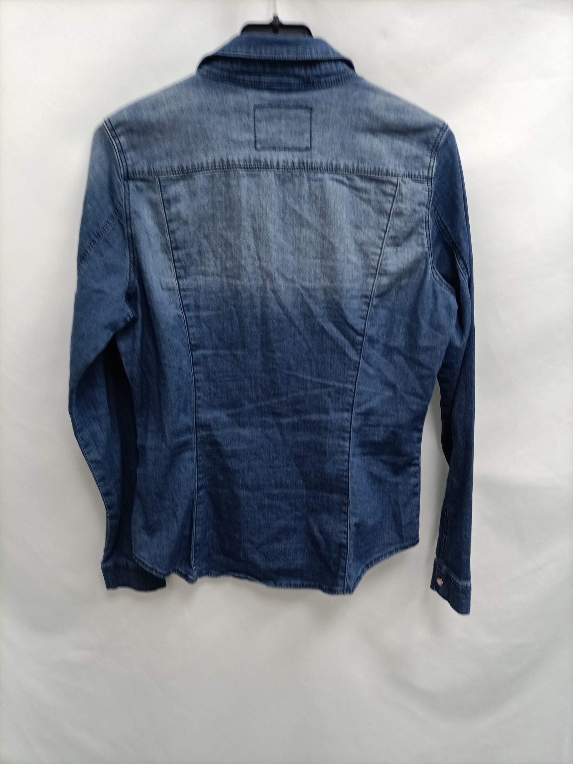 Camisa vaquera oscura abotonada y no elástica. De sisa a sisa 48 cm largo 65 cm