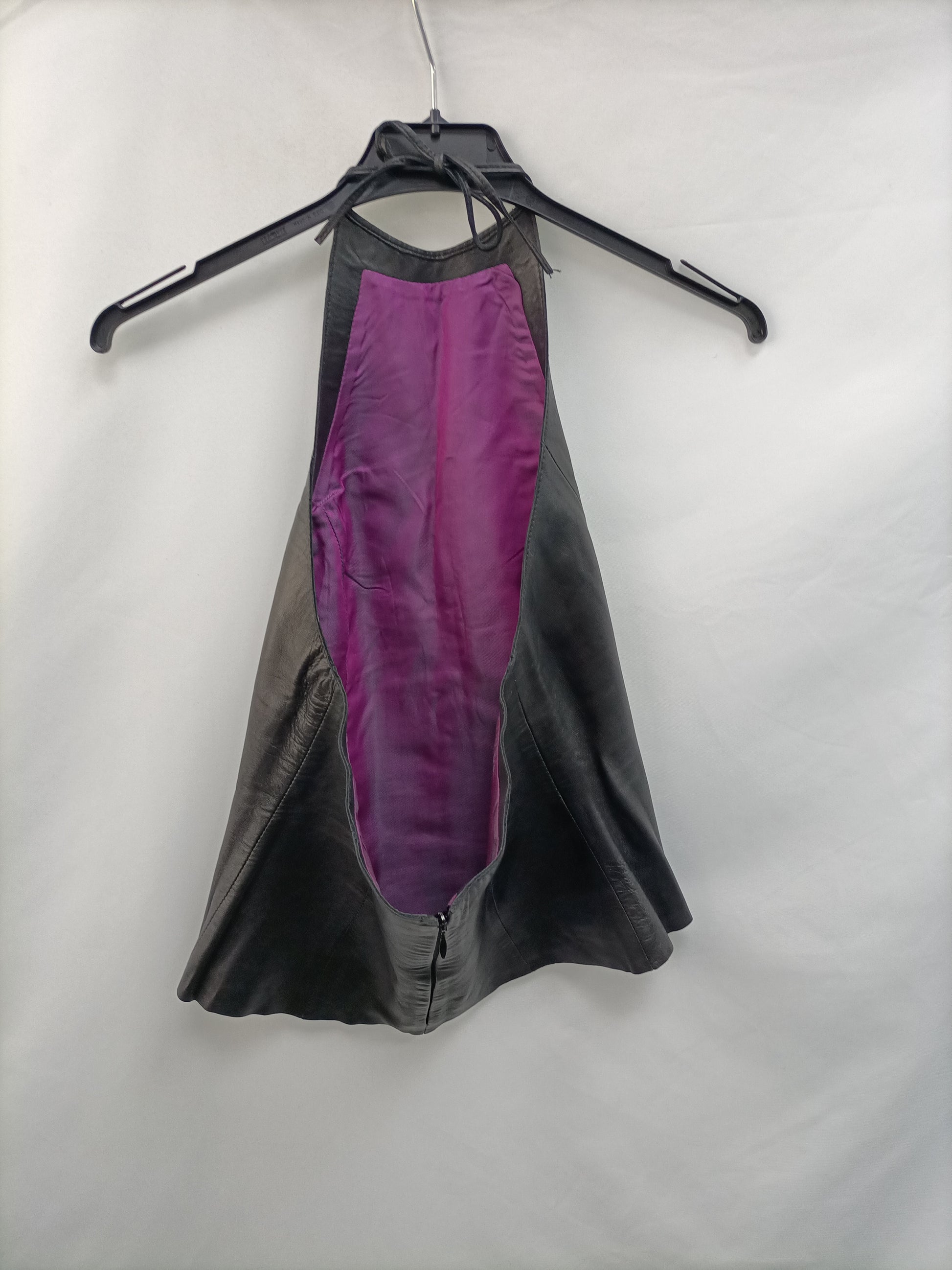 Top de negro de piel atado al cuello. Contorno 36 Largo 47 cm