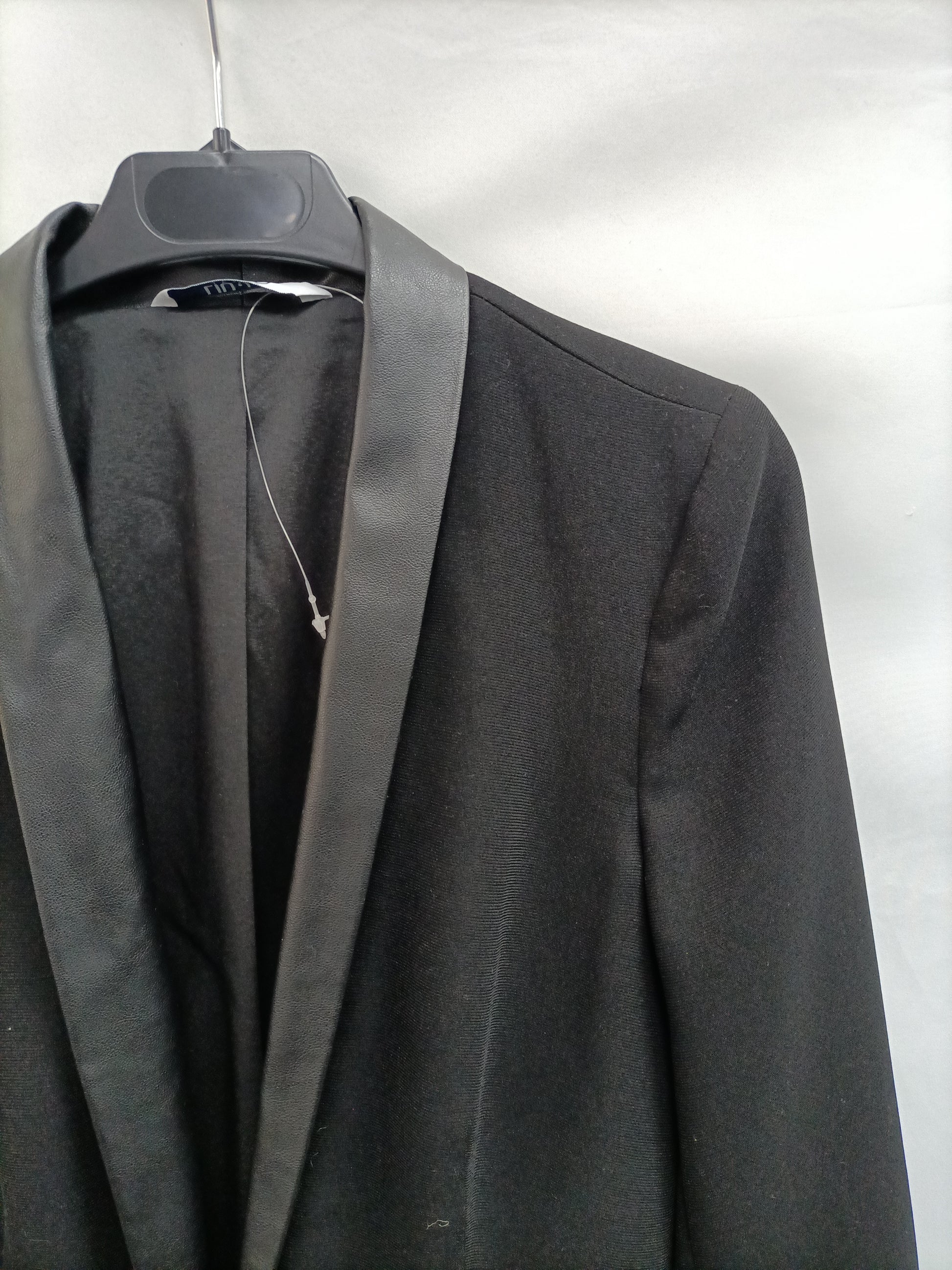 Blazer negra básica con la solapa de polipiel. No Elastico. De sisa a sisa 47 Largo 70 cm