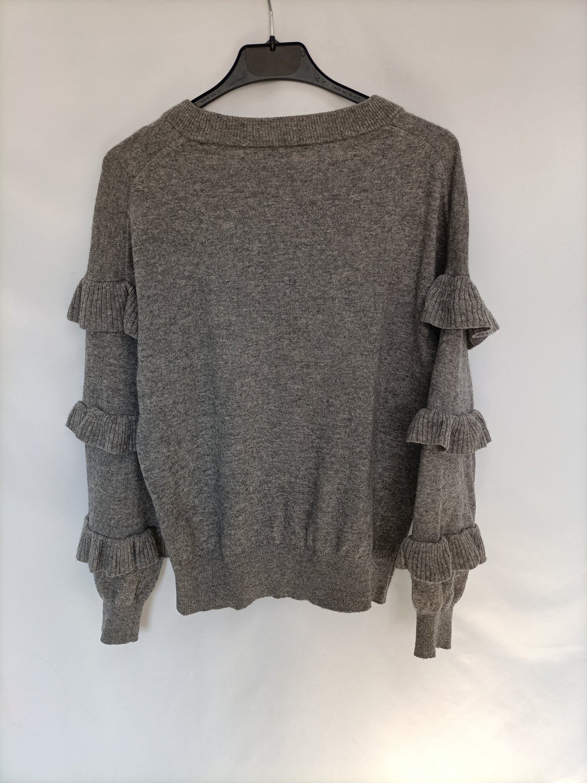Jersey gris de punto con volantes en las mangas. Elastico. largo 60 cm