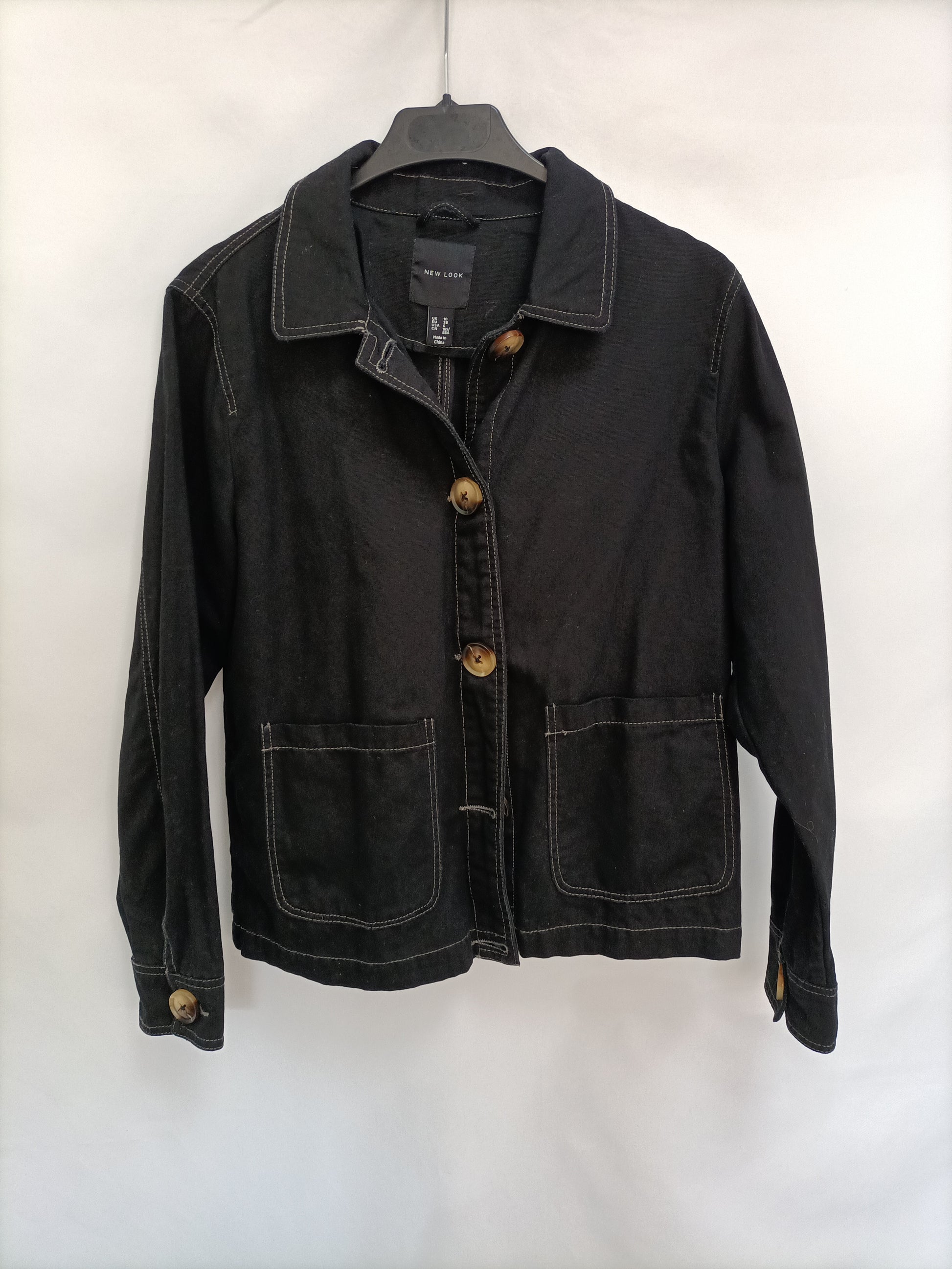 Chaqueta negra denim finita con botones de nácar y detalle de costuras blancas. No elástico. De sisa a sisa50 cm Largo 60 cm