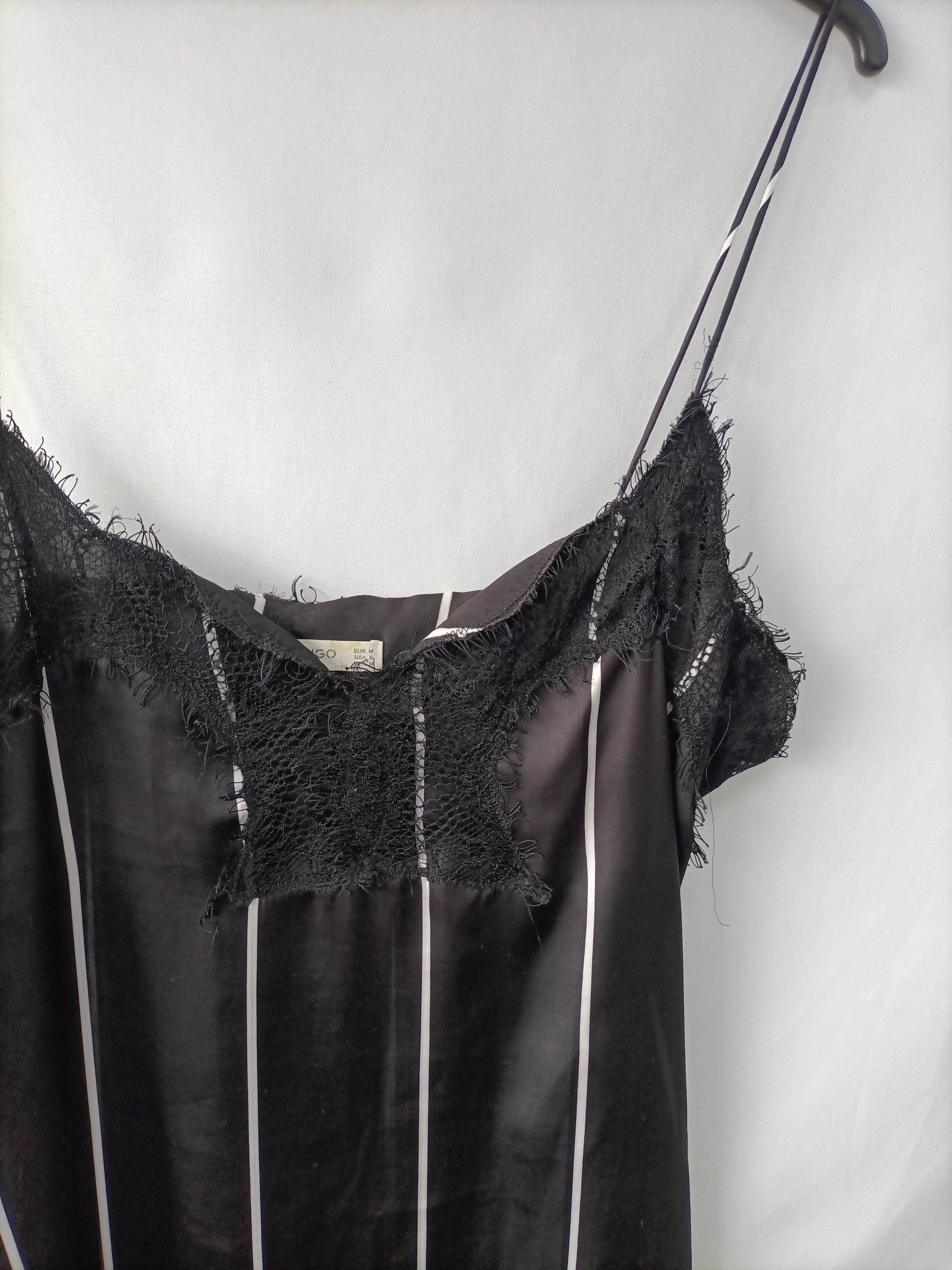 Vestido corto lencero negro con rayas blancas. No elástico. de sisa a sisa 45 cm largo 87 cm