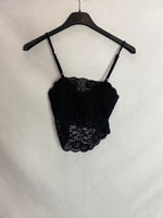 BERSHKA. Croptop lencero negro. T.S