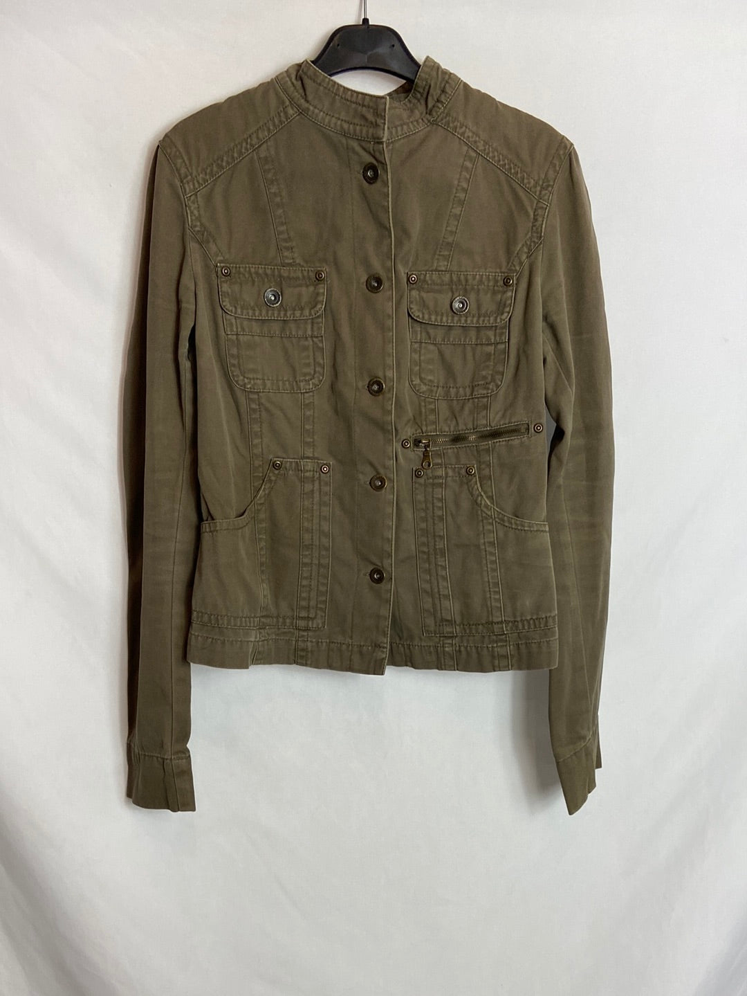STRADIVARIUS. Cazadora verde bolsillos T.M